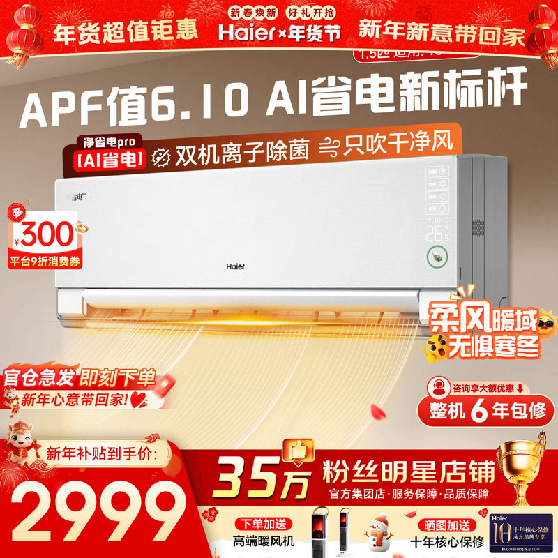 【镇店爆款】海尔空调净省电Plus1.5匹1匹家用官方新一级挂机35E1