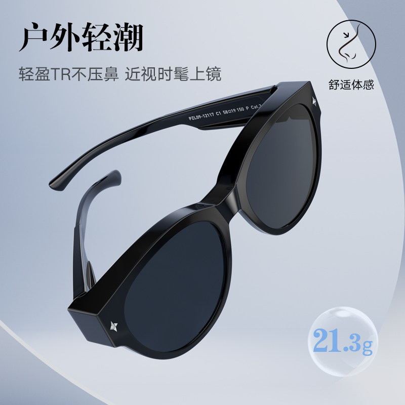 帕森太阳镜女 防晒驾驶偏光套镜近视驾驶眼镜猫眼墨镜PZ12117
