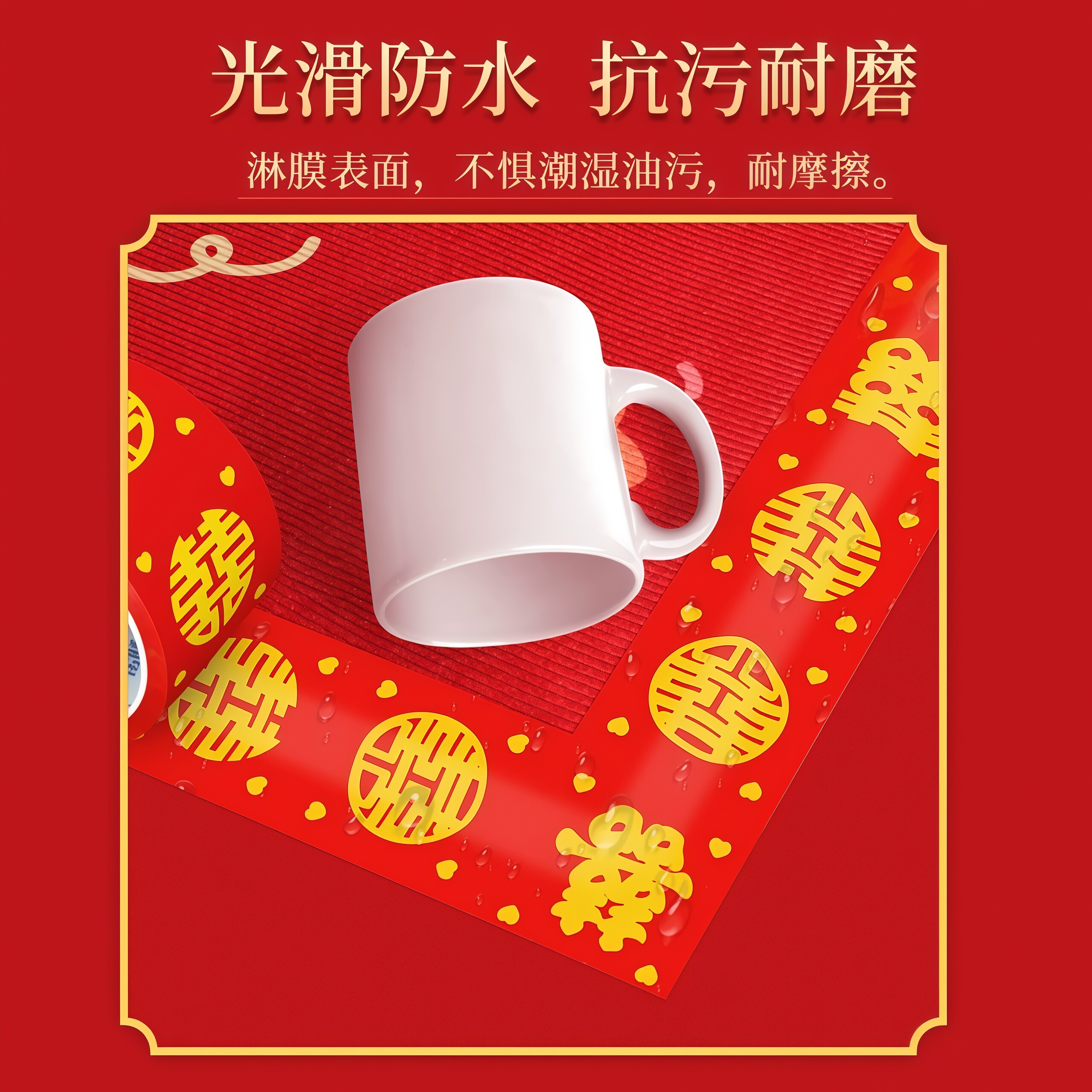 双喜封箱口宽胶布结婚喜字胶带喜庆装饰井盖胶地毯胶婚礼主题红色