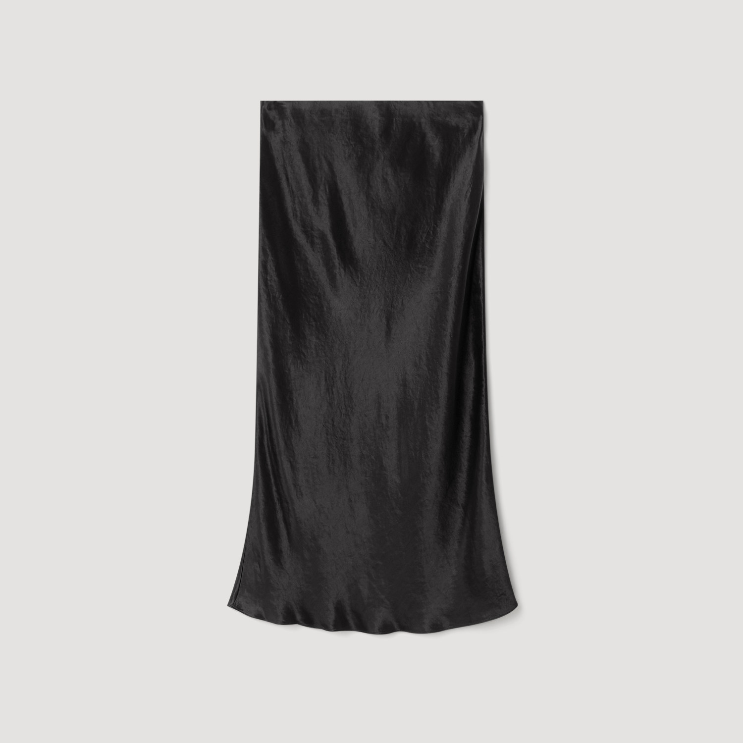 OVV2026春夏新款女装醋酸光泽感小黑裙简约直筒半身裙