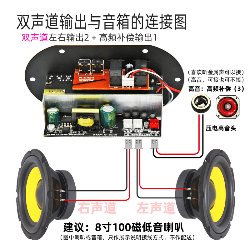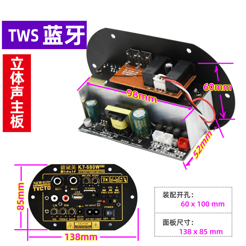 KT680W消原唱蓝牙立体声功放板音响主板大功率高音质对箱互联模块