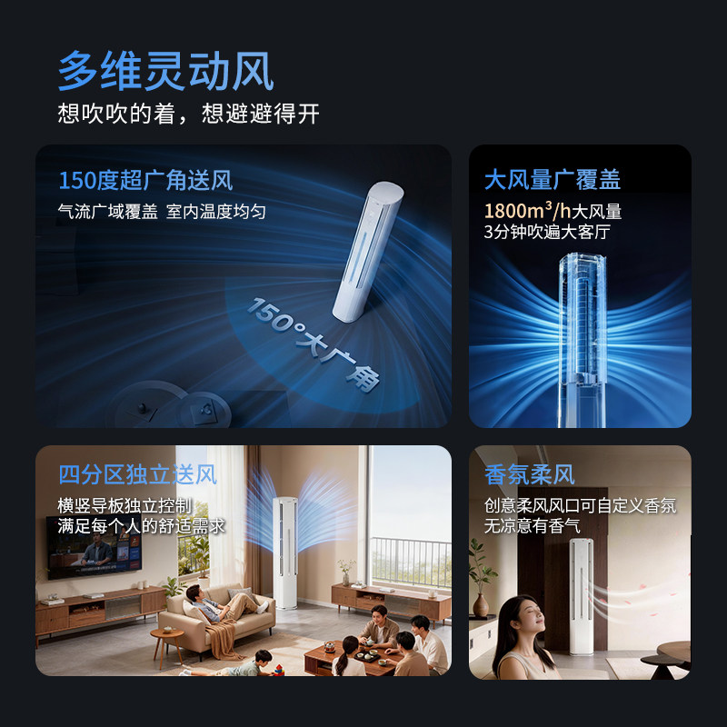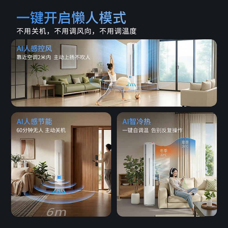 新品[懒人神机-人感防直吹]海尔出品统帅立式空调双排3匹一级客厅