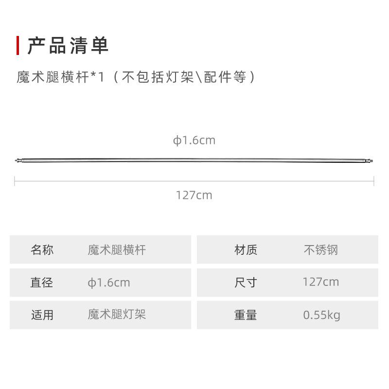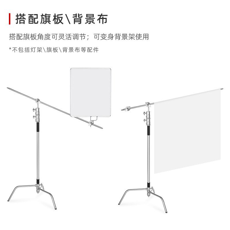 魔术腿摄影C型灯架单横杆127cm配件支架金属车轮子横臂架平衡沙袋