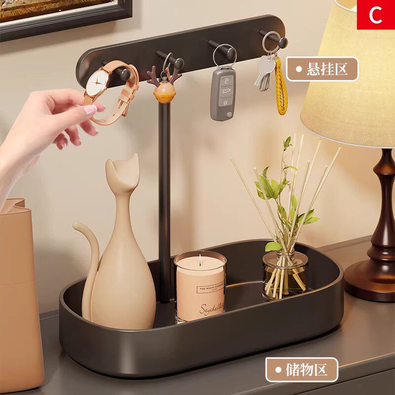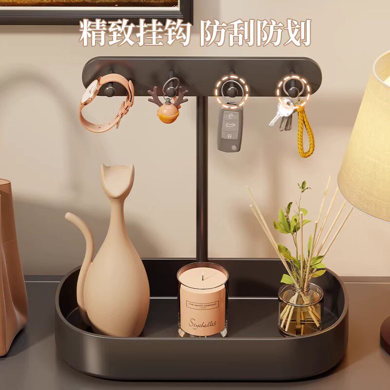 玄关钥匙收纳摆件梳妆台前铁质多功能开放饰品架台面多挂钩首饰架