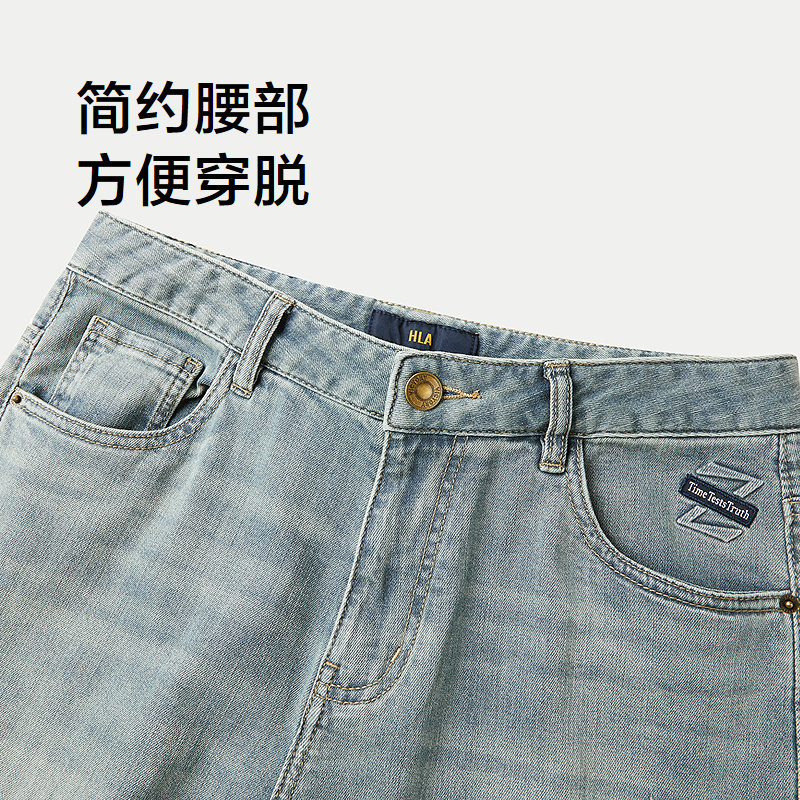 HLA/海澜之家五袋款牛仔裤春夏宽松小脚弹力字母刺绣裤子男