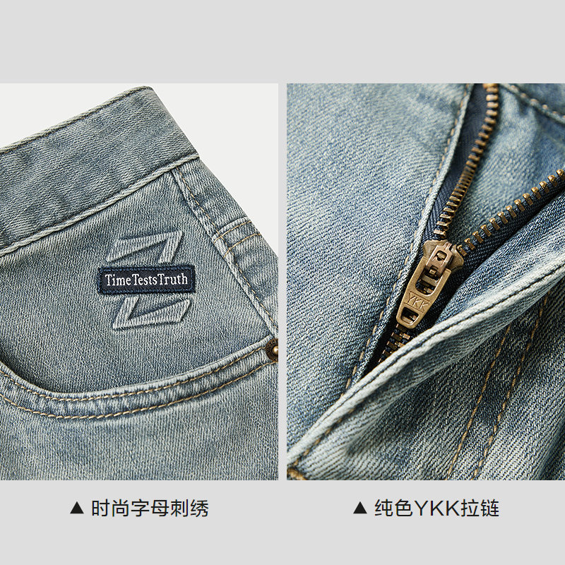 吉普专柜秋冬季新款复古牛仔裤男宽松直筒大码加绒加厚水洗长裤子