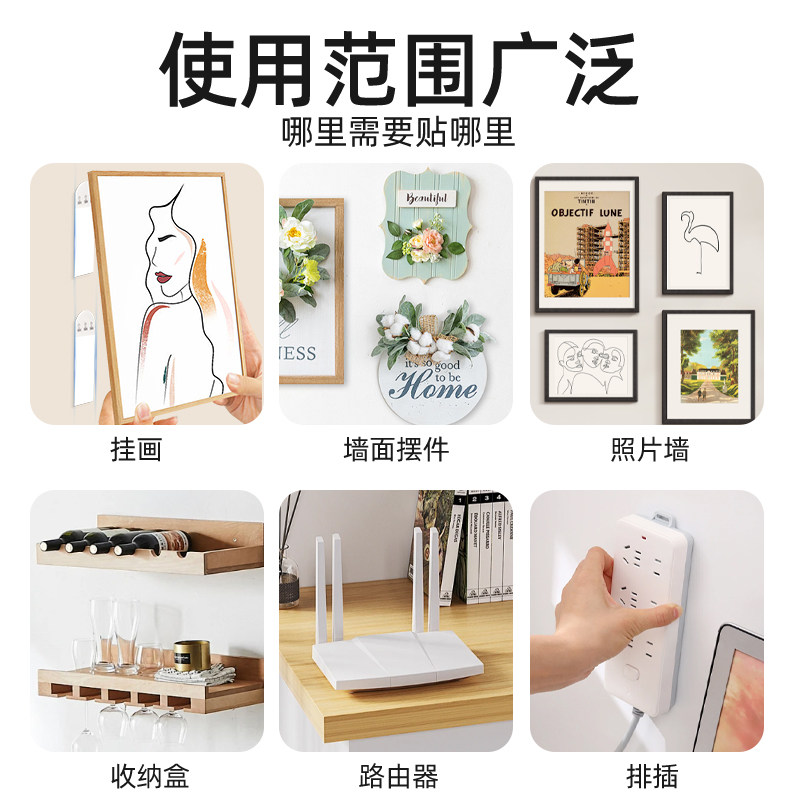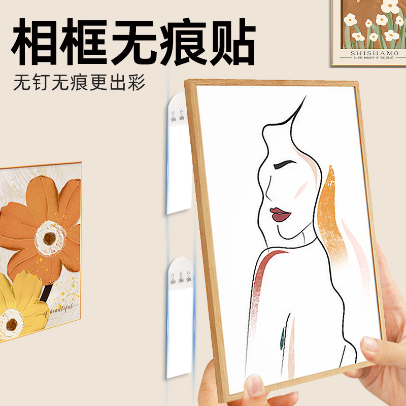 3M高曼无痕胶条挂画神器免打孔无痕乳胶漆墙面固定高粘度不伤墙相框壁画专用强力双面胶双面无痕子母魔力扣