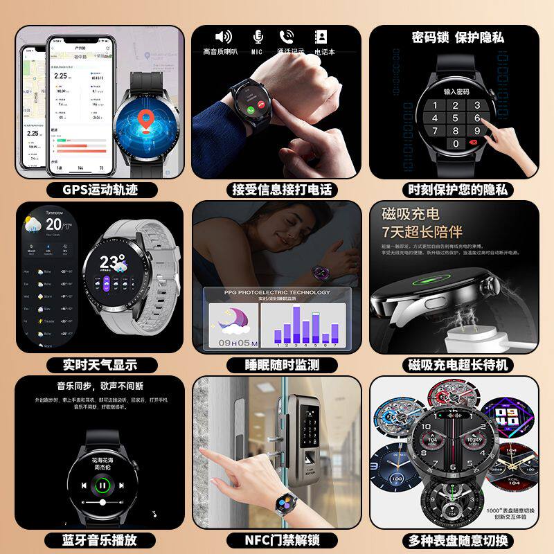 【气泵式】测血压手表高精度心率手环血氧风险评估检测量仪老年人健康监测睡眠运动跑步新款蓝牙智能手表男女