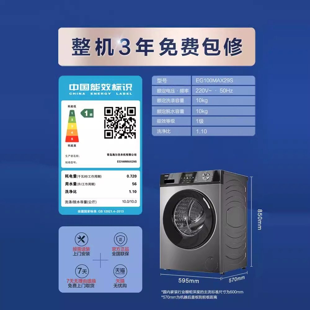 【国补15%】海尔滚筒洗衣机家用全自动超薄10kg大容量除菌MAX29