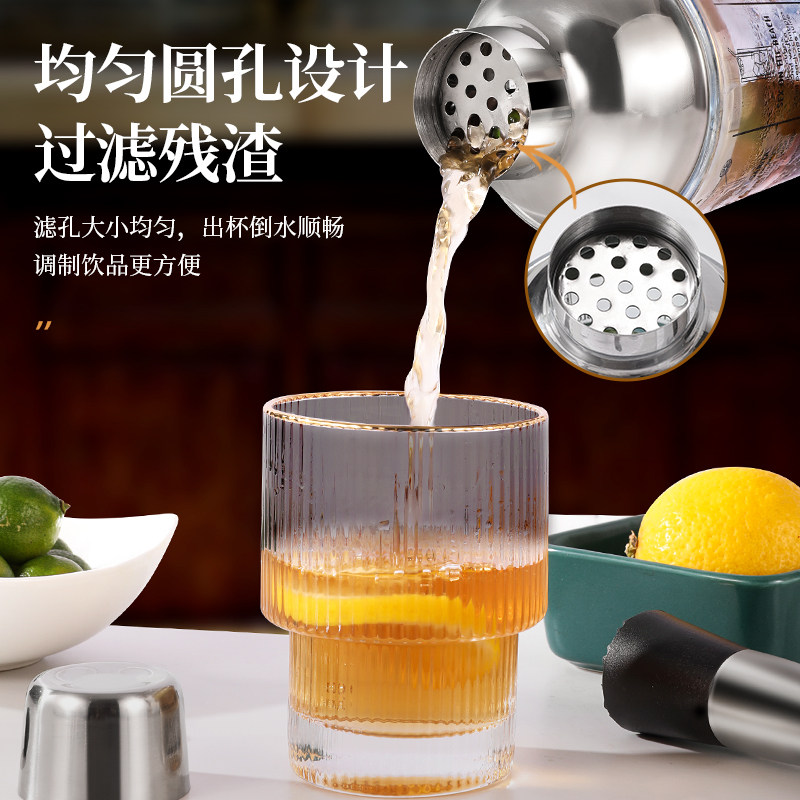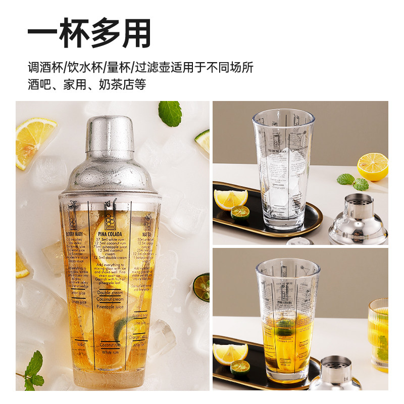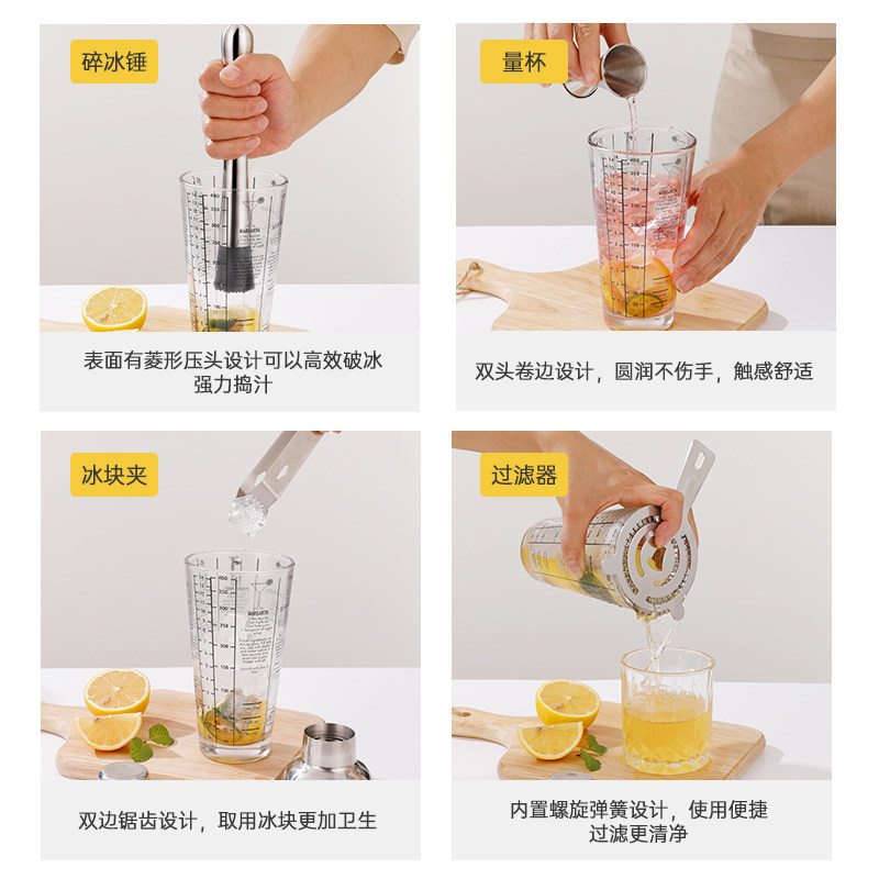 不锈钢调酒器玻璃雪克杯一套手摇壶鸡尾酒吧调酒工具套装入门摇杯