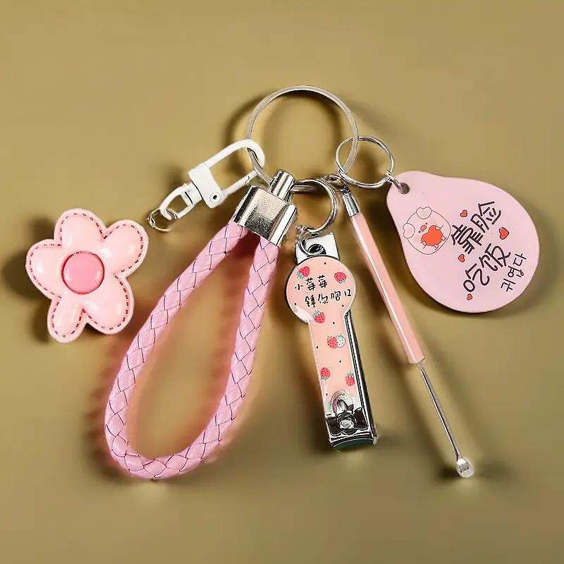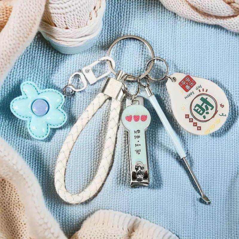 可爱钥匙扣少女闺蜜挂件配饰指甲刀挖耳勺情侣钥匙链套装挂绳实用