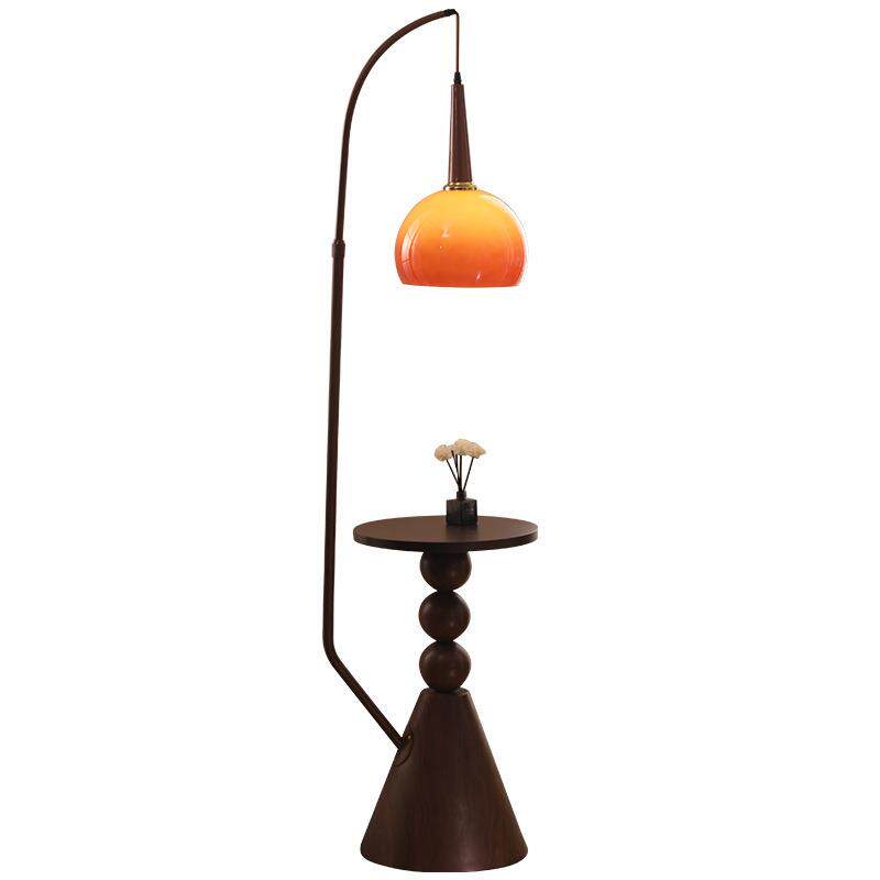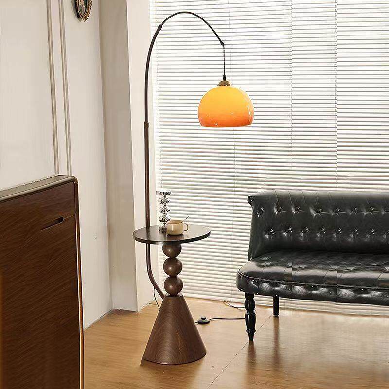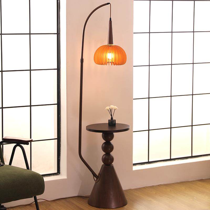 中古风柚子落地灯客厅沙发边置物茶几一体复古卧室床头柜立式台灯