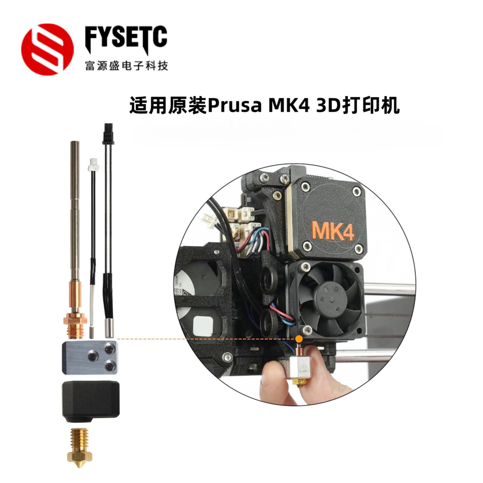 适用Prusa MK4/XL热端挤出头喷头加热棒套件测温线3D打印机配件
