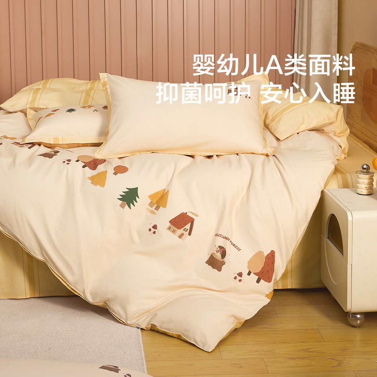 水星儿童纯棉全棉学生宿舍家用床上三/四件套男女孩通用被套床单
