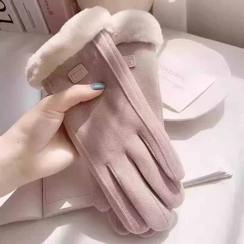 女士德绒秋冬季户外保暖防寒加绒骑行手套可触屏防滑运动防风骑车