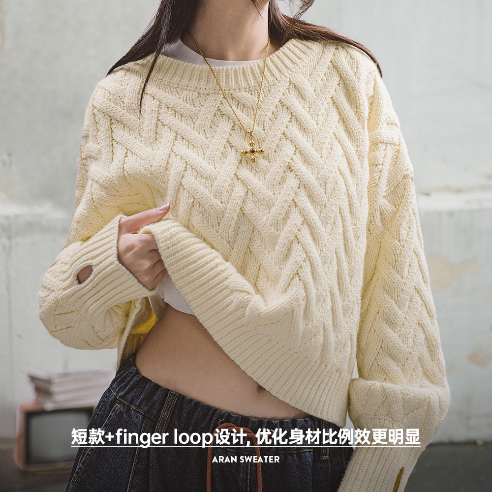 马登美式阿兰绞花毛衣复古麻花针织衫休闲长袖内搭毛衫厚冬女