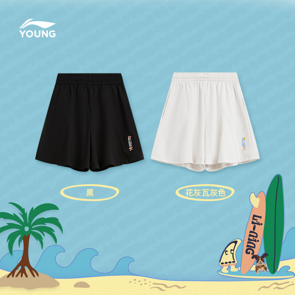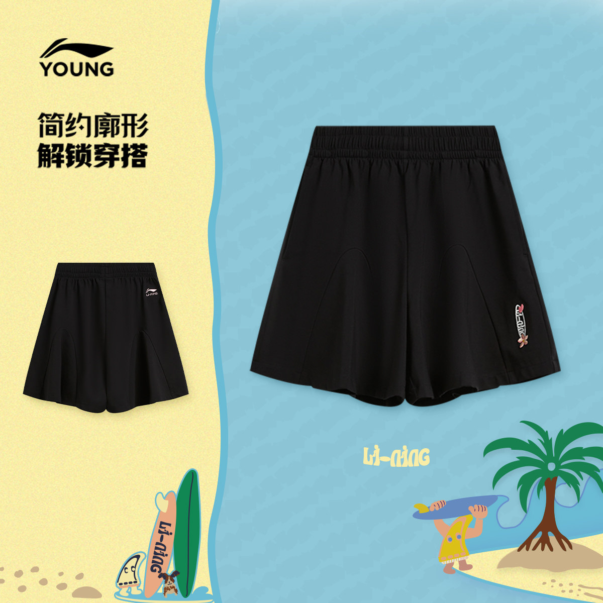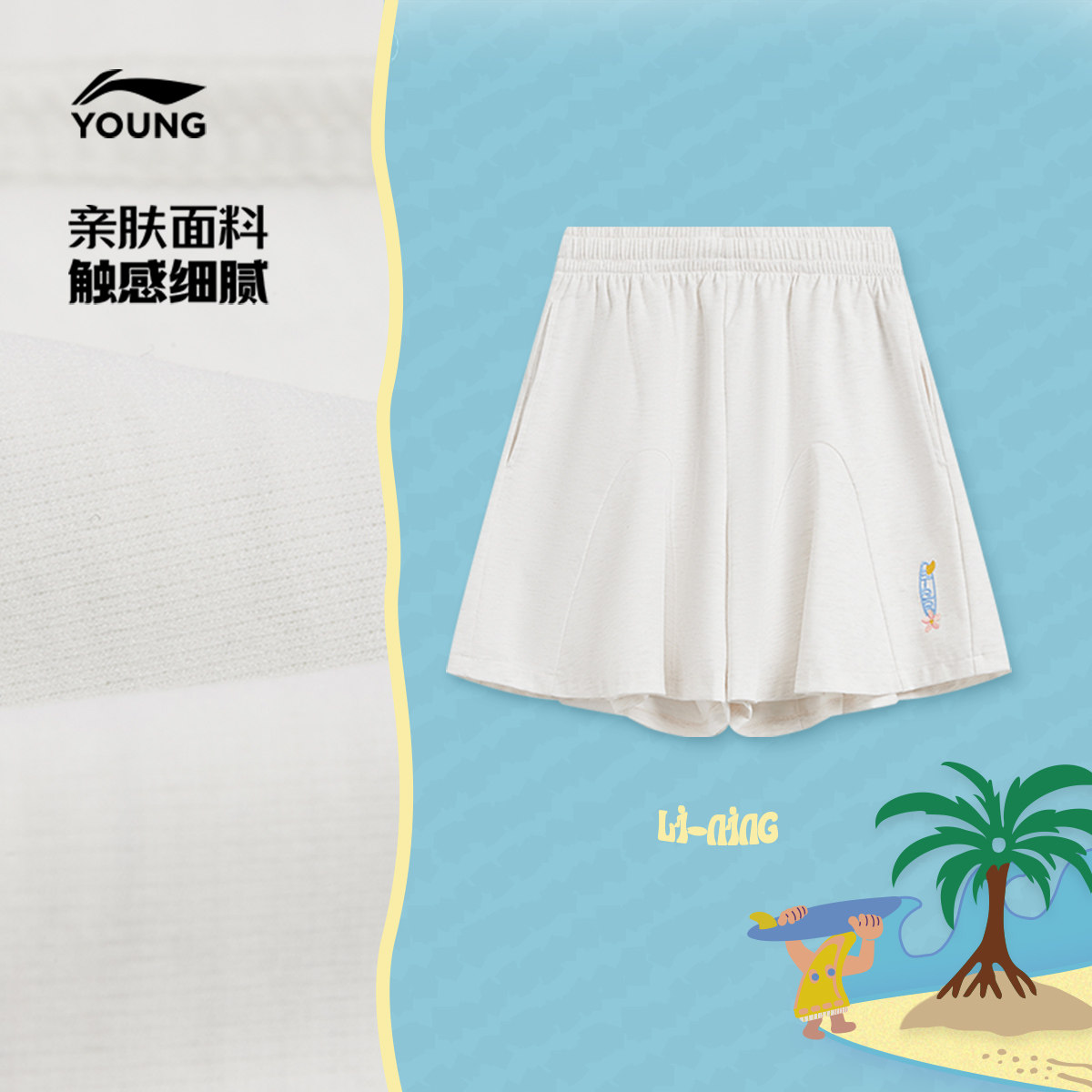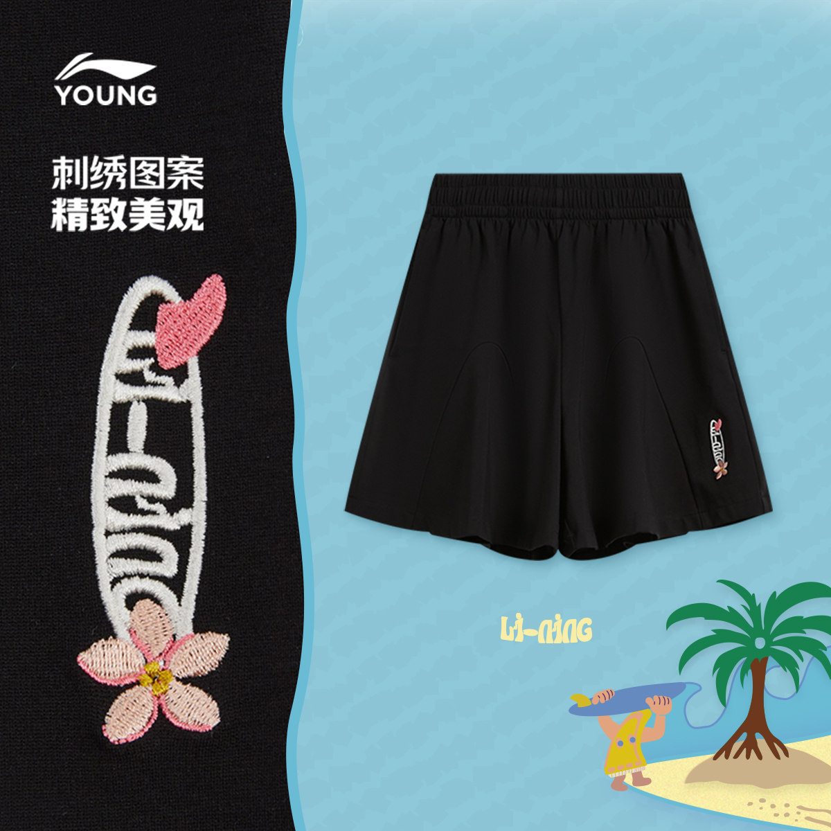 李宁童装短卫裤女大童运动生活系列青少年夏季休闲针织童装