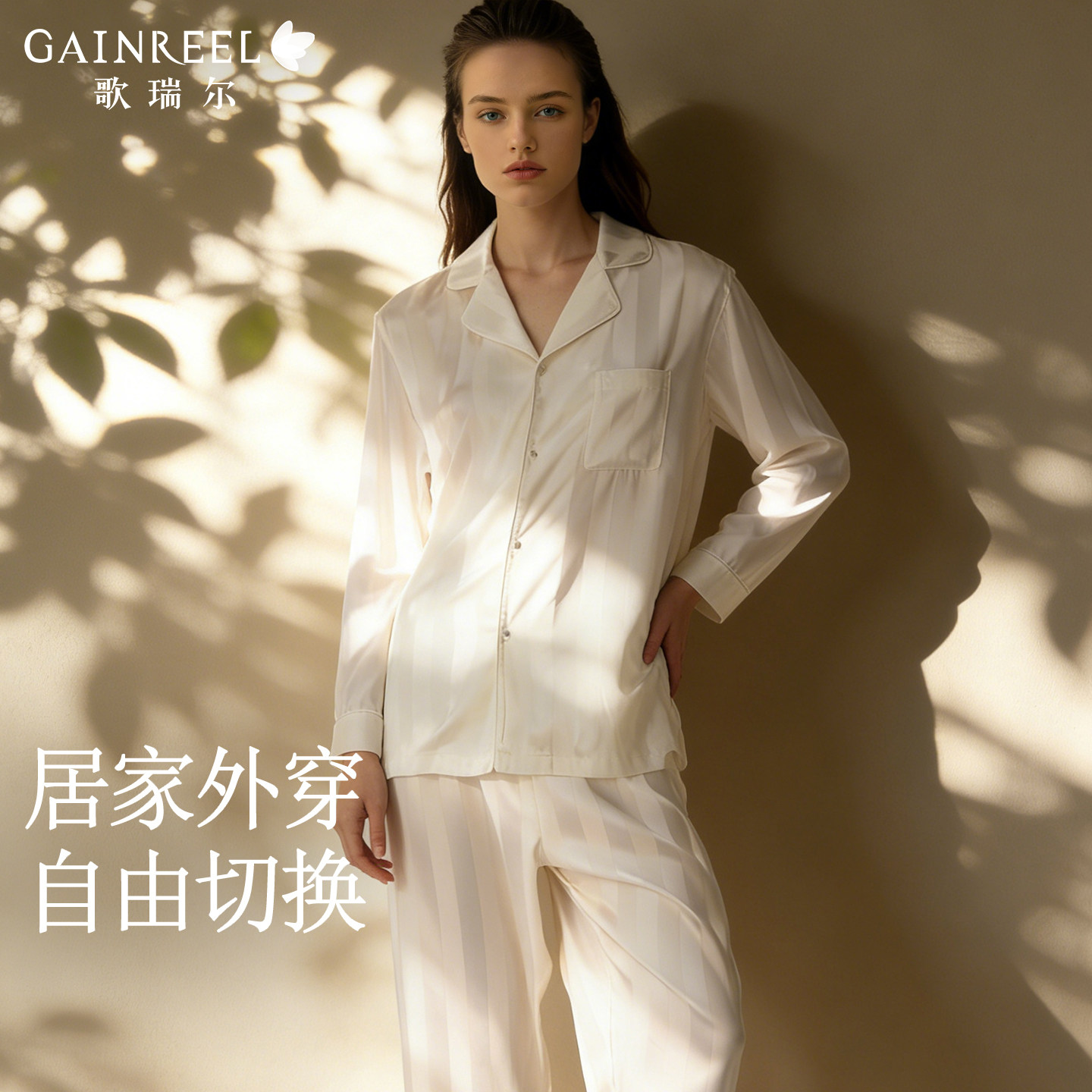 歌瑞尔新款缎面冰丝长袖长裤睡衣女高级感可外穿舒适家居服套装