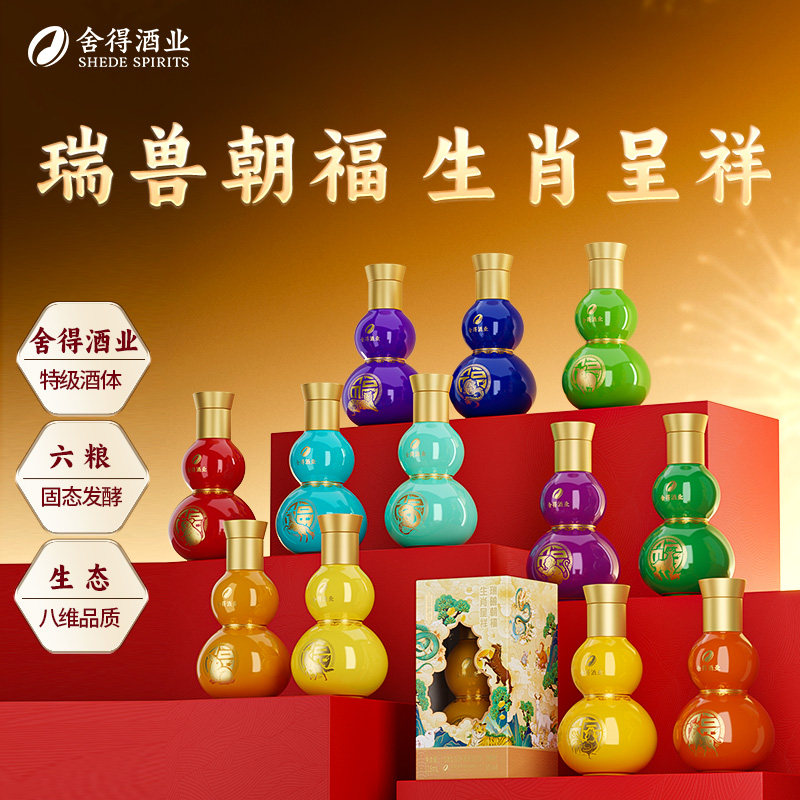 舍得玉带祥云生肖福禄小酒52度浓香型白酒118ml*6瓶*1【前肖】