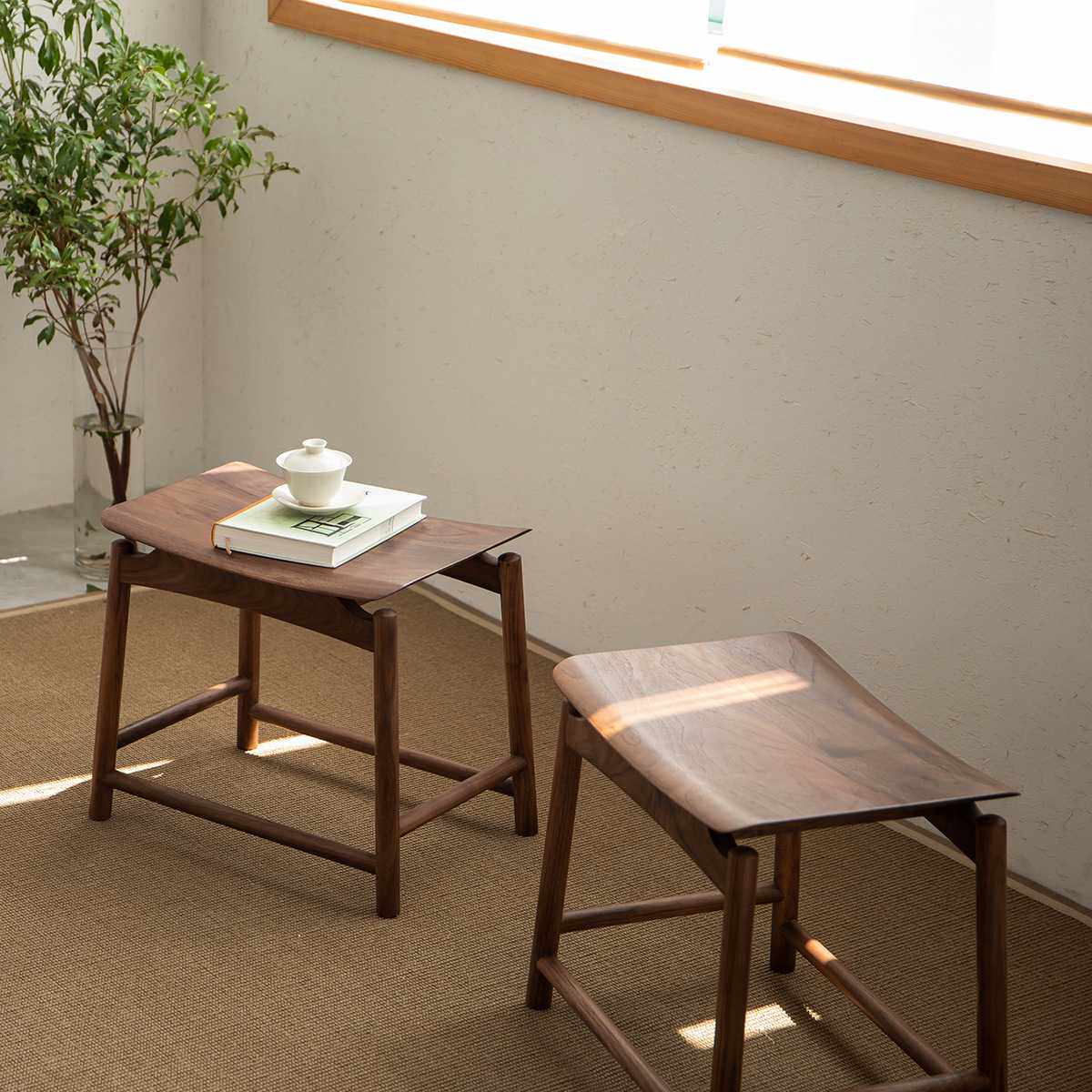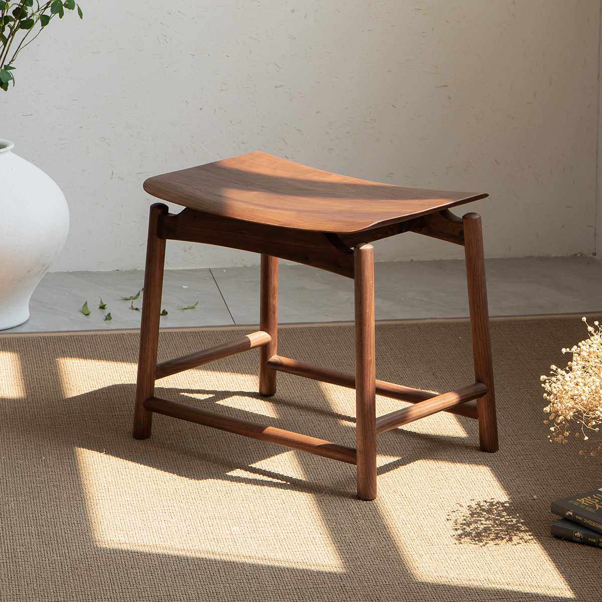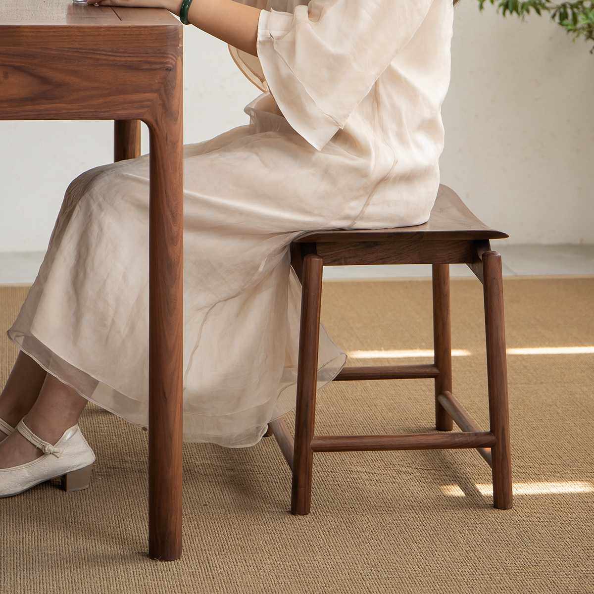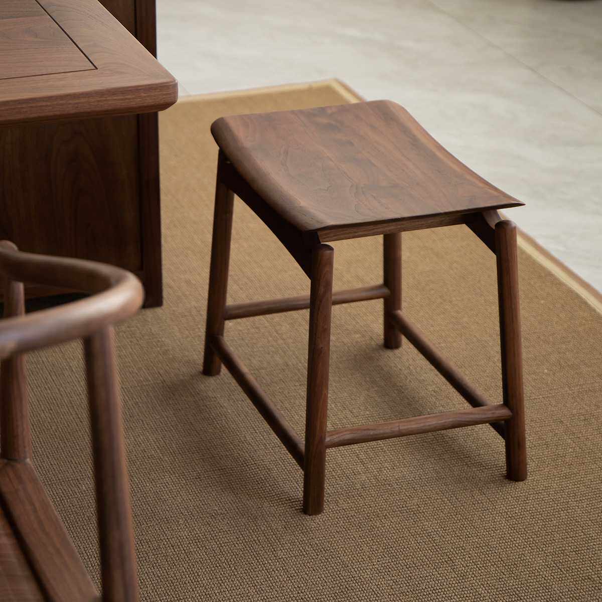 空器新中式凳子实木方凳黑胡桃木原木换鞋小板凳马鞍凳新中式茶凳