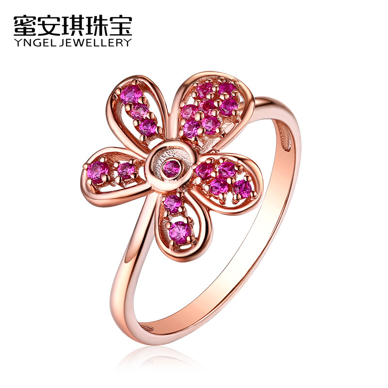 Yngel/蜜安琪0.22克拉天然红宝石戒指女18K玫瑰金镶嵌彩宝定制