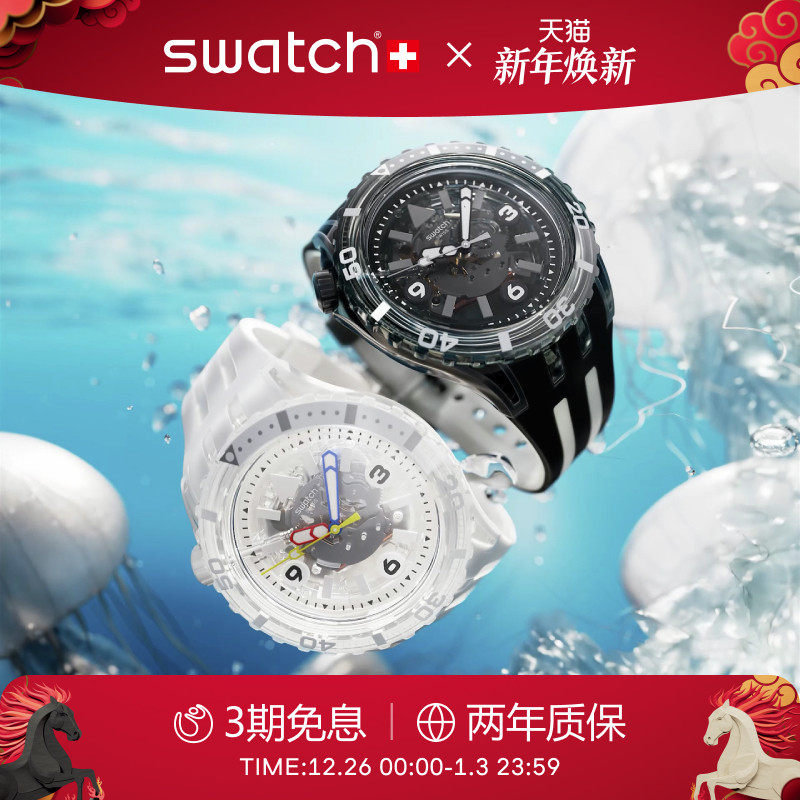 Swatch斯沃琪瑞士新款潜水风格夜光防水学生情侣彩盘手表新年礼物
