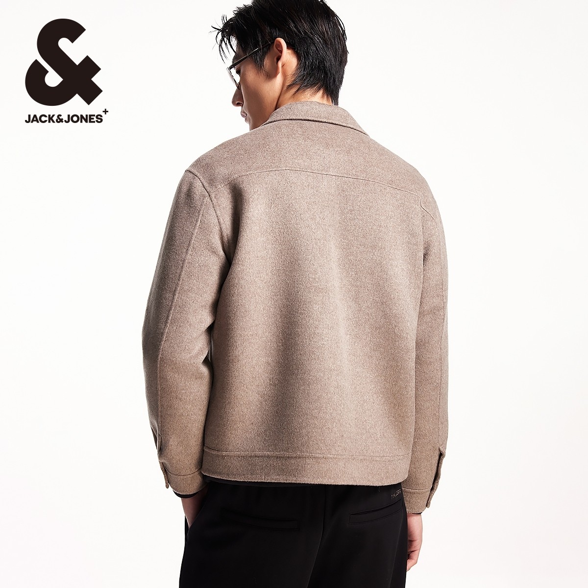 杰克琼斯男装秋冬潮休闲摁扣门襟纯羊毛方领百搭舒适外套毛呢大衣