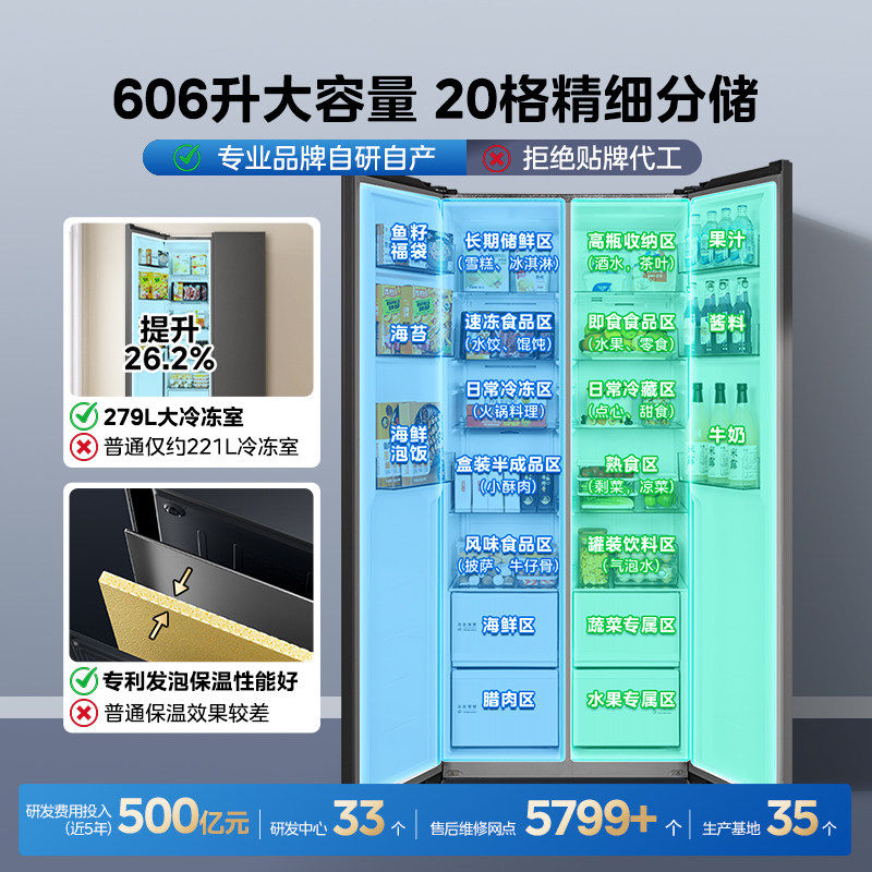 美的606/570+L对开门大容量一级双变频超薄嵌入式风冷无霜607升级