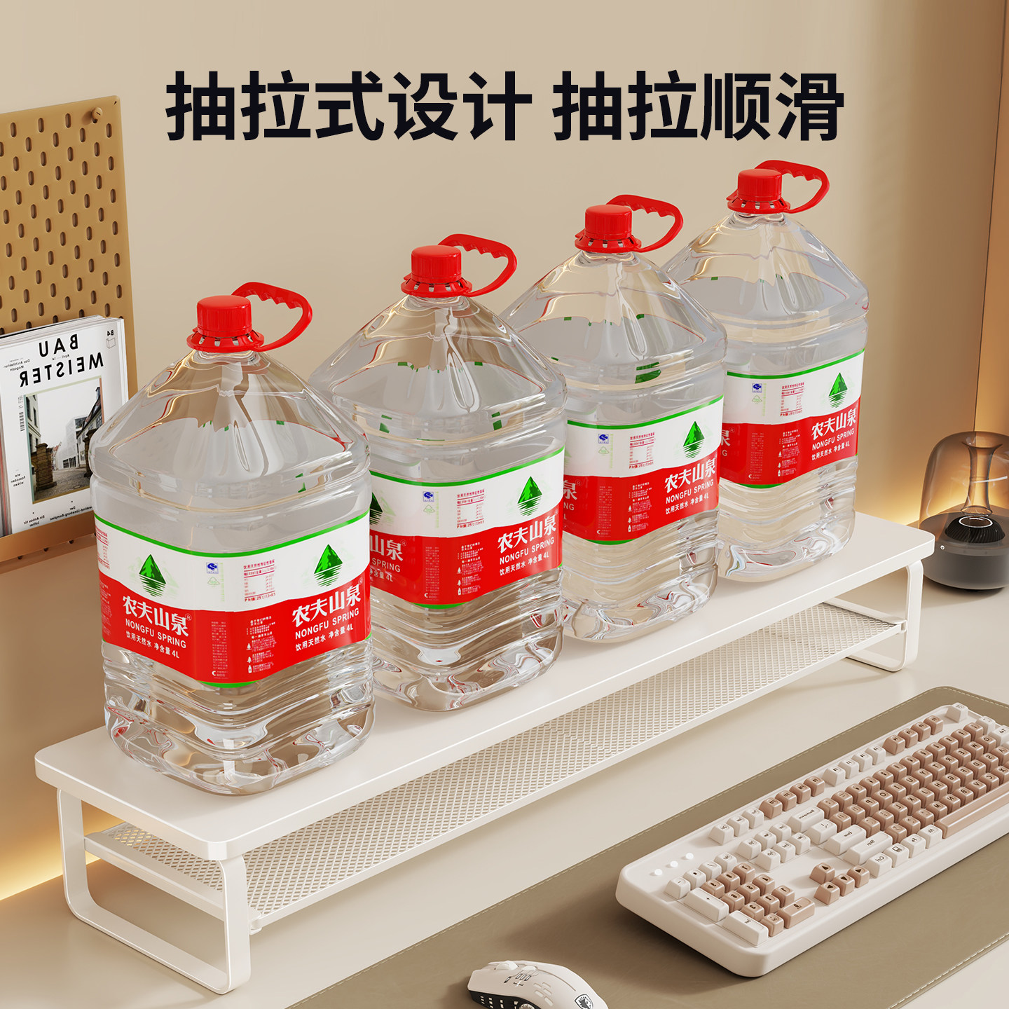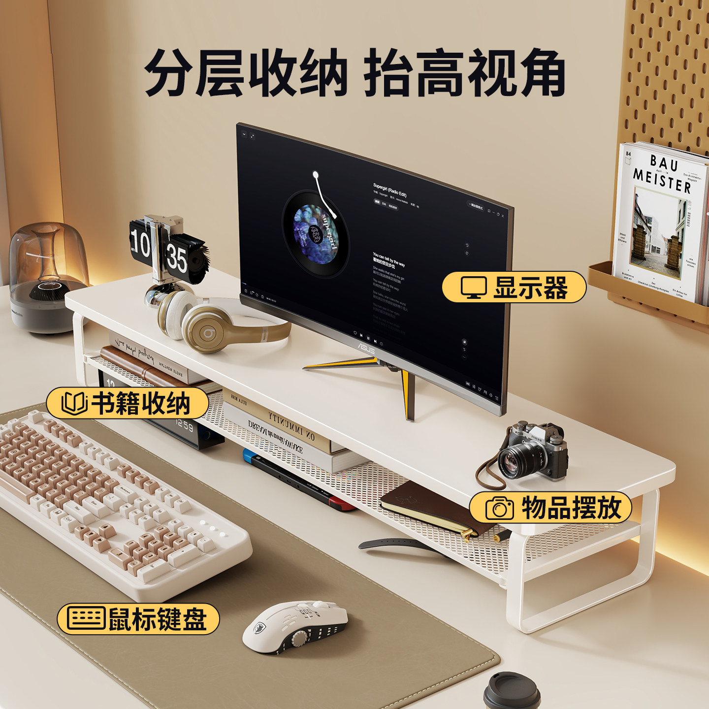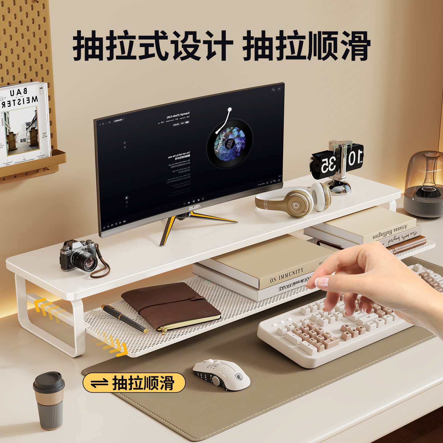 电脑增高架办公桌面台式显示器屏置物架台面收纳整理支架可抽拉底座