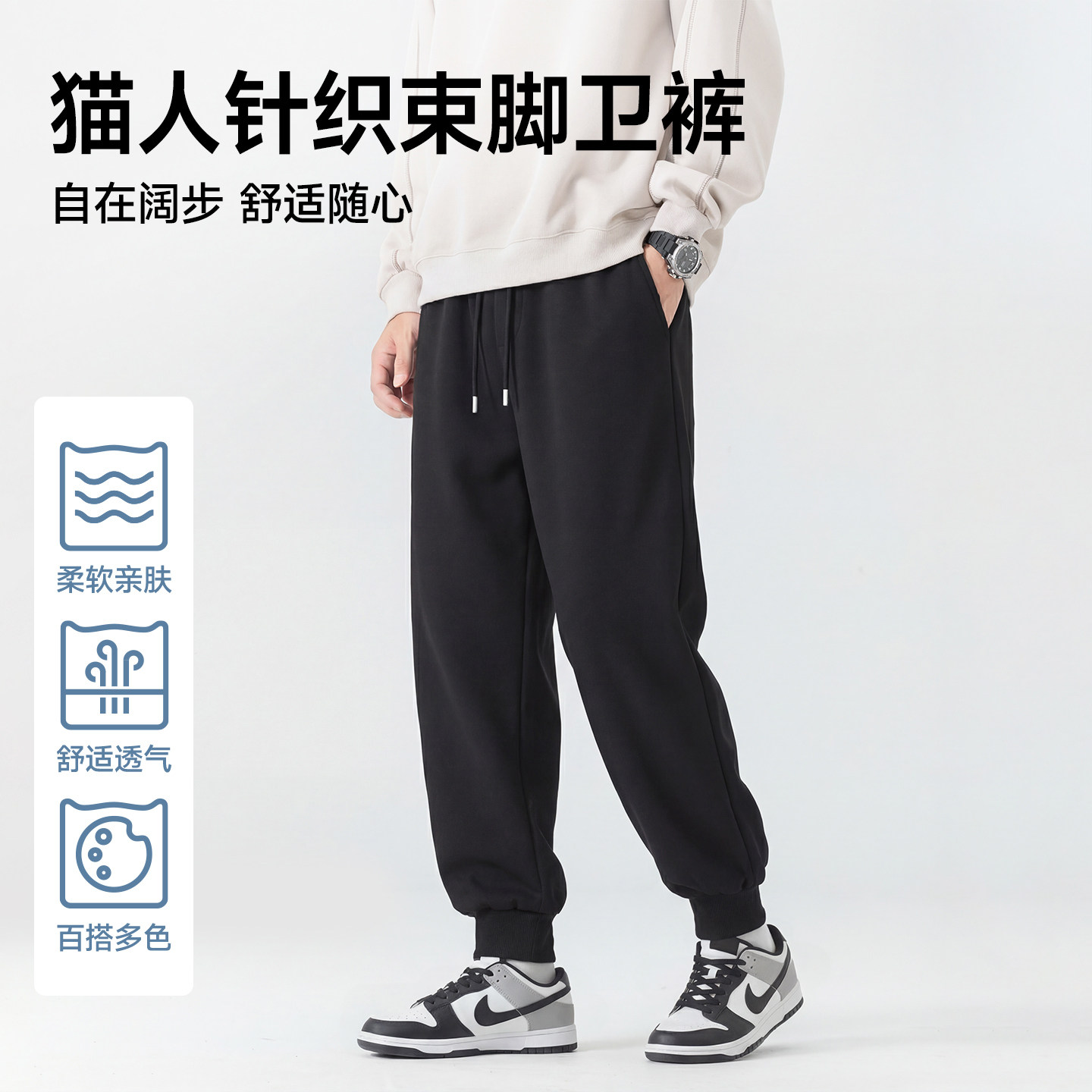 猫人黑色裤子男2026年潮流美式束脚裤春秋季显瘦运动休闲裤男款J