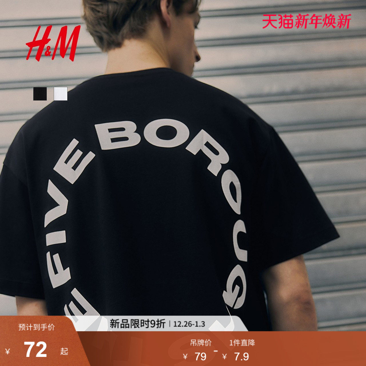HM男装女装T恤冬季印花棉质中等克重落肩宽松短打底衫情侣1227157