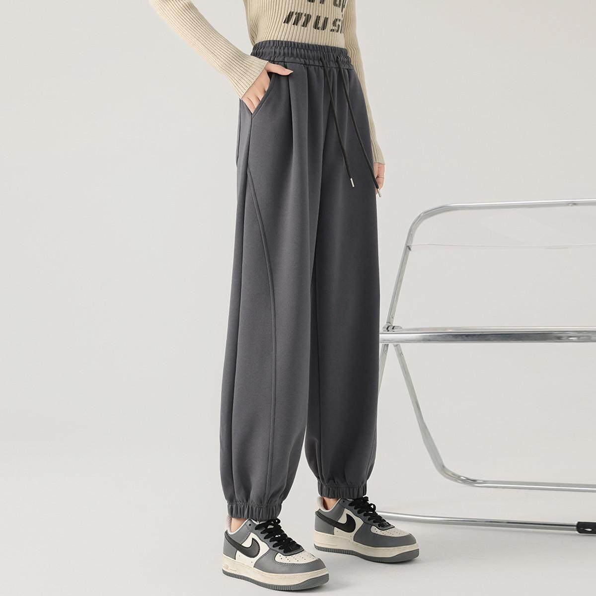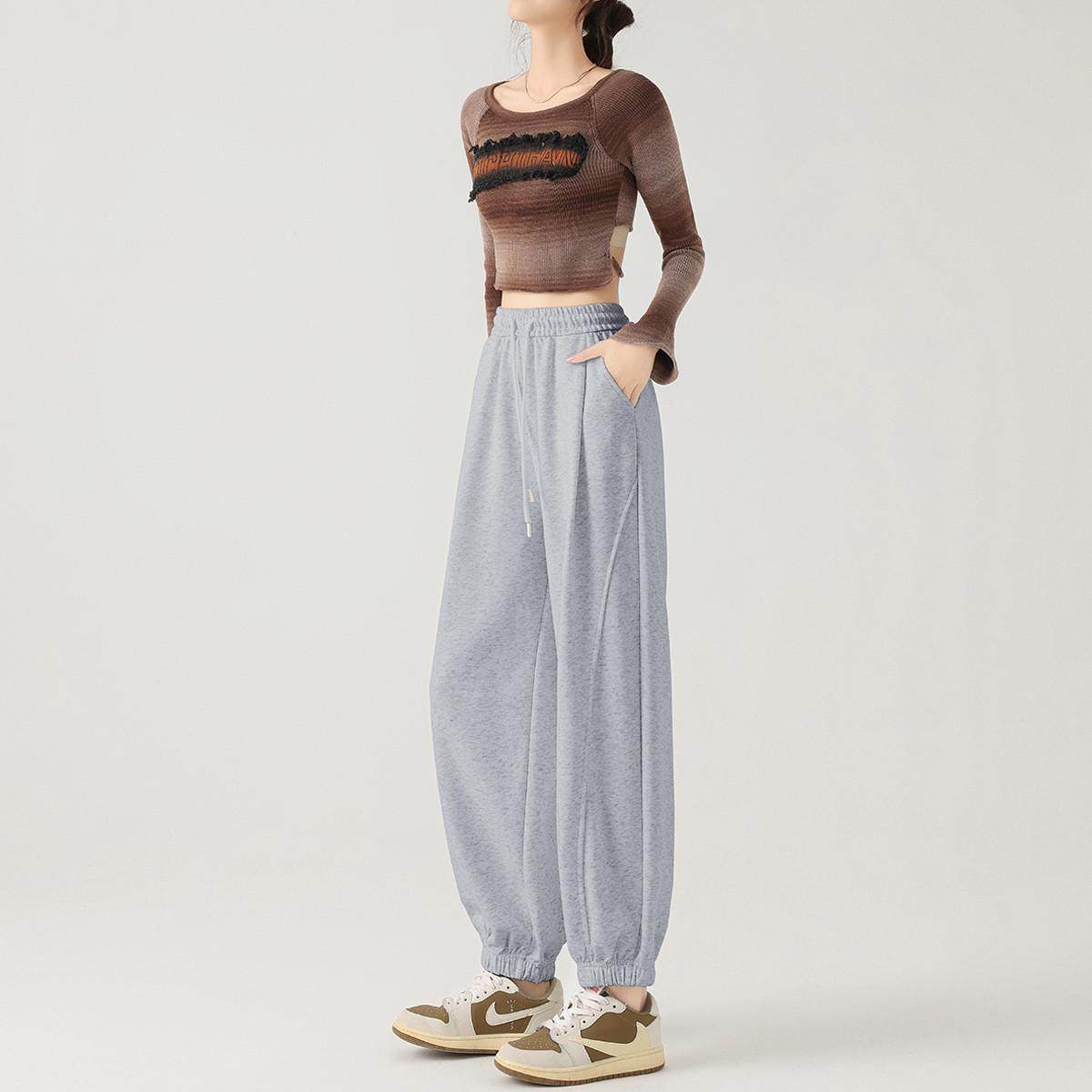 BLUETREE2025冬季新款爆款休闲裤女松紧腰抽绳百搭长裤弯刀阔腿裤