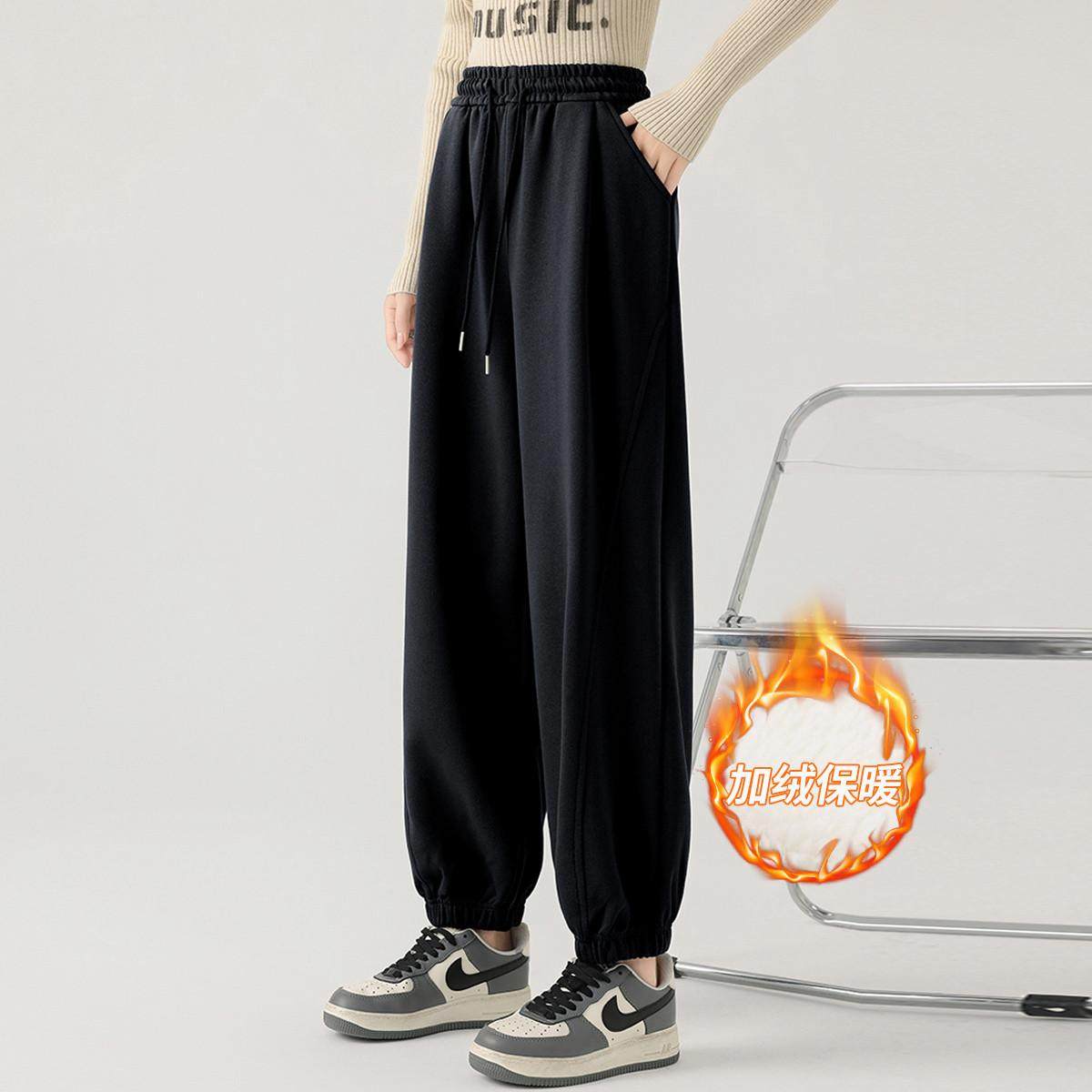 冬季新款加绒加厚卫裤女宽松显瘦百搭休闲运动裤高腰直筒阔腿长裤