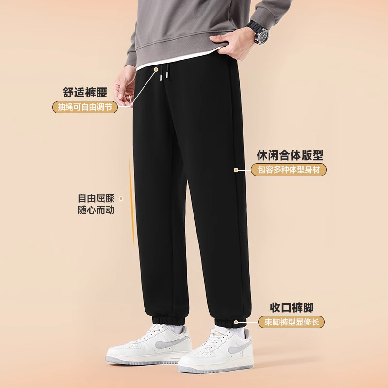 雪中飞加绒裤子男冬季2025新款加厚摇粒绒束脚裤大码显瘦休闲裤PC
