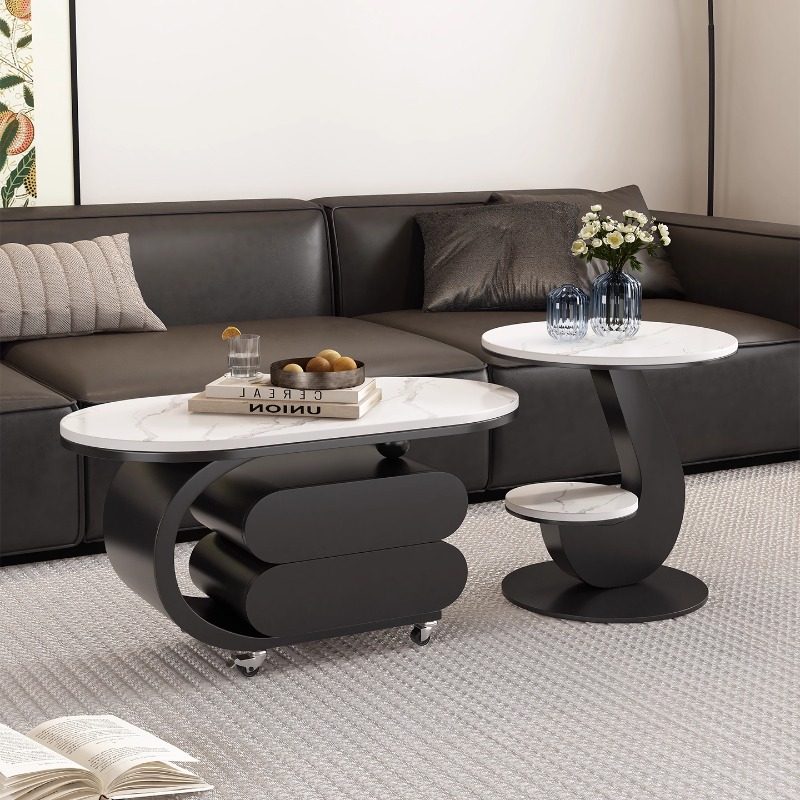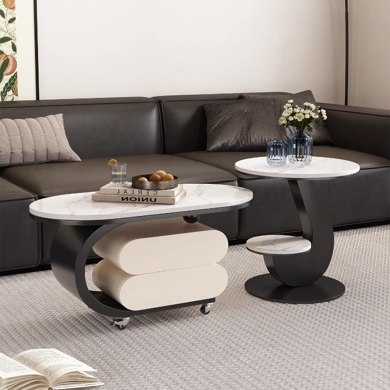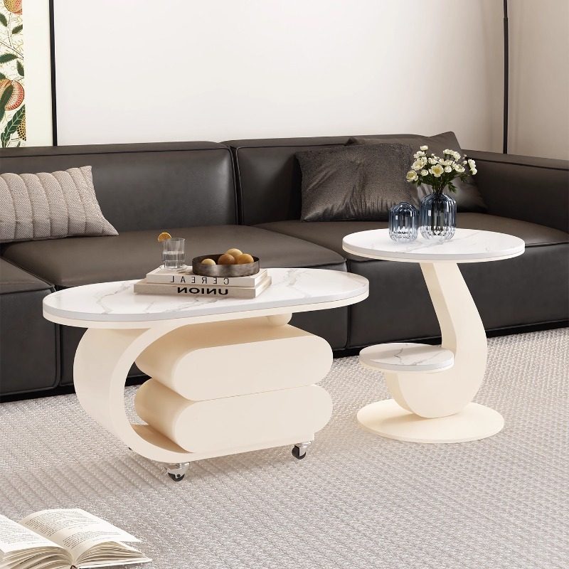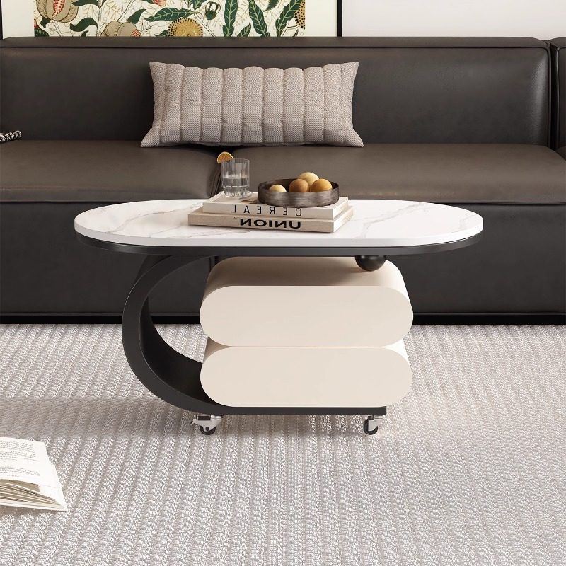 茶几带抽屉现代轻奢可移动家用岩板推车边几高级设计椭圆角几