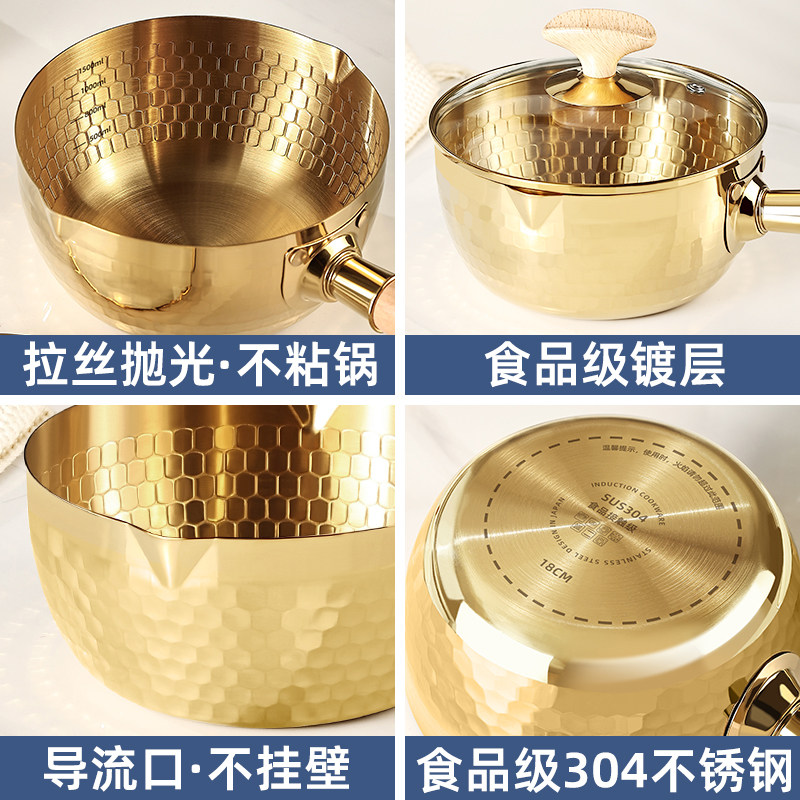 德国304不锈钢雪平锅日式煮面锅泡面锅家用奶锅辅食锅汤锅电磁炉