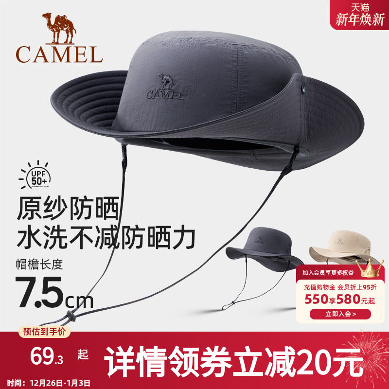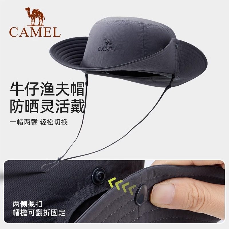 骆驼原纱登山防晒帽西部牛仔帽遮阳防紫外线凉帽upf50+徒步丛林帽