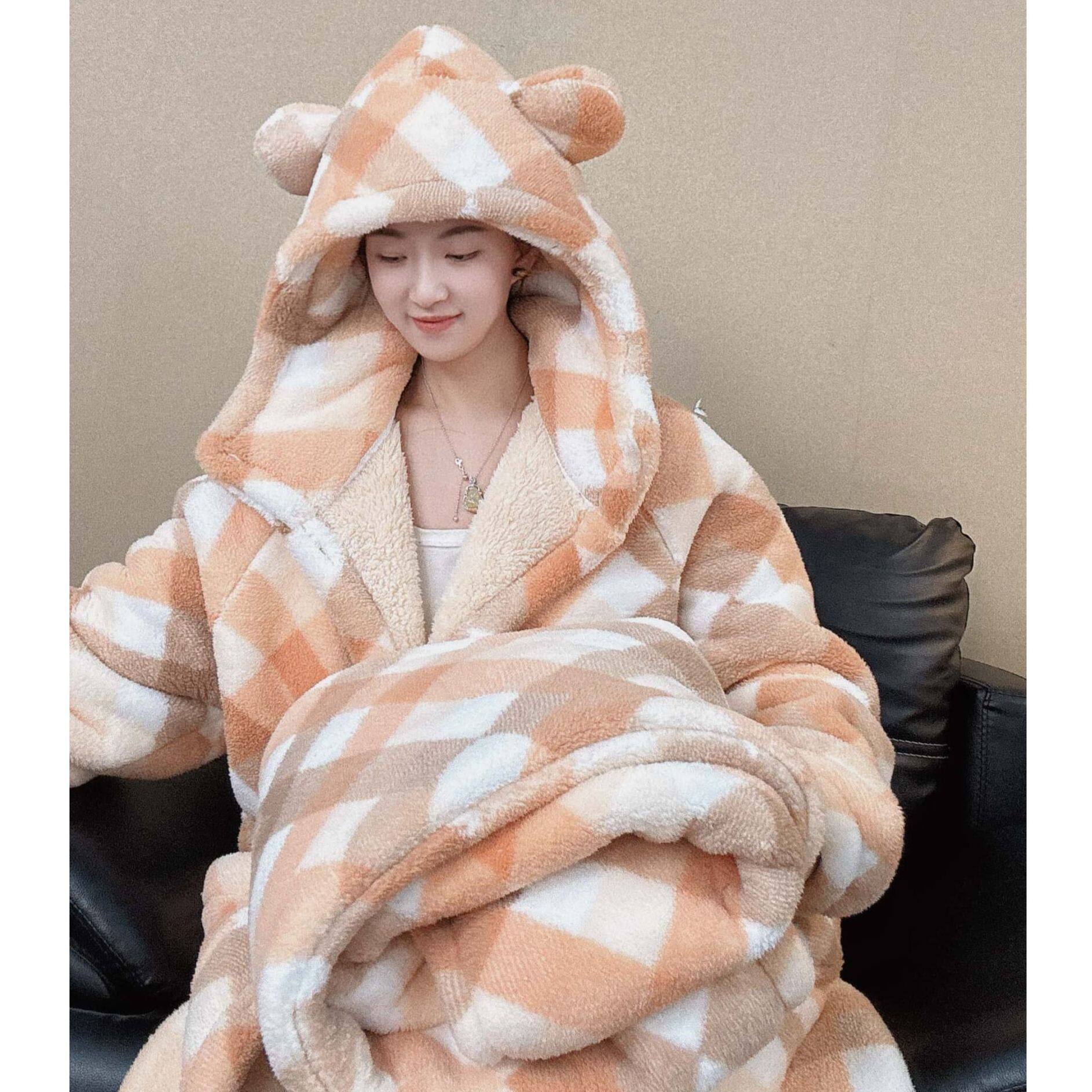 【三层夹绒】冬睡衣家居服套装中长款睡袍毛绒浴袍加厚情侣款保暖