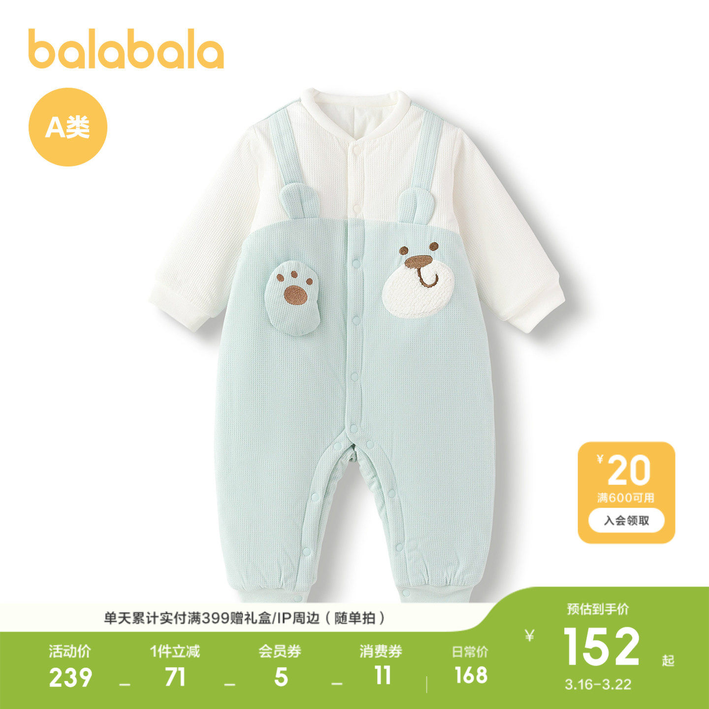 【商场同款】巴拉巴拉连体衣婴儿春秋宝宝抱衣爬服2026新款假两件