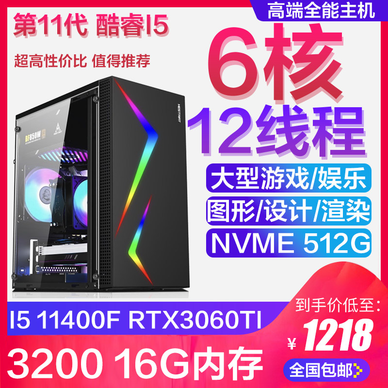 十一代i5 11400F高配台式二手电脑主机吃鸡游戏电竞直播设计2060