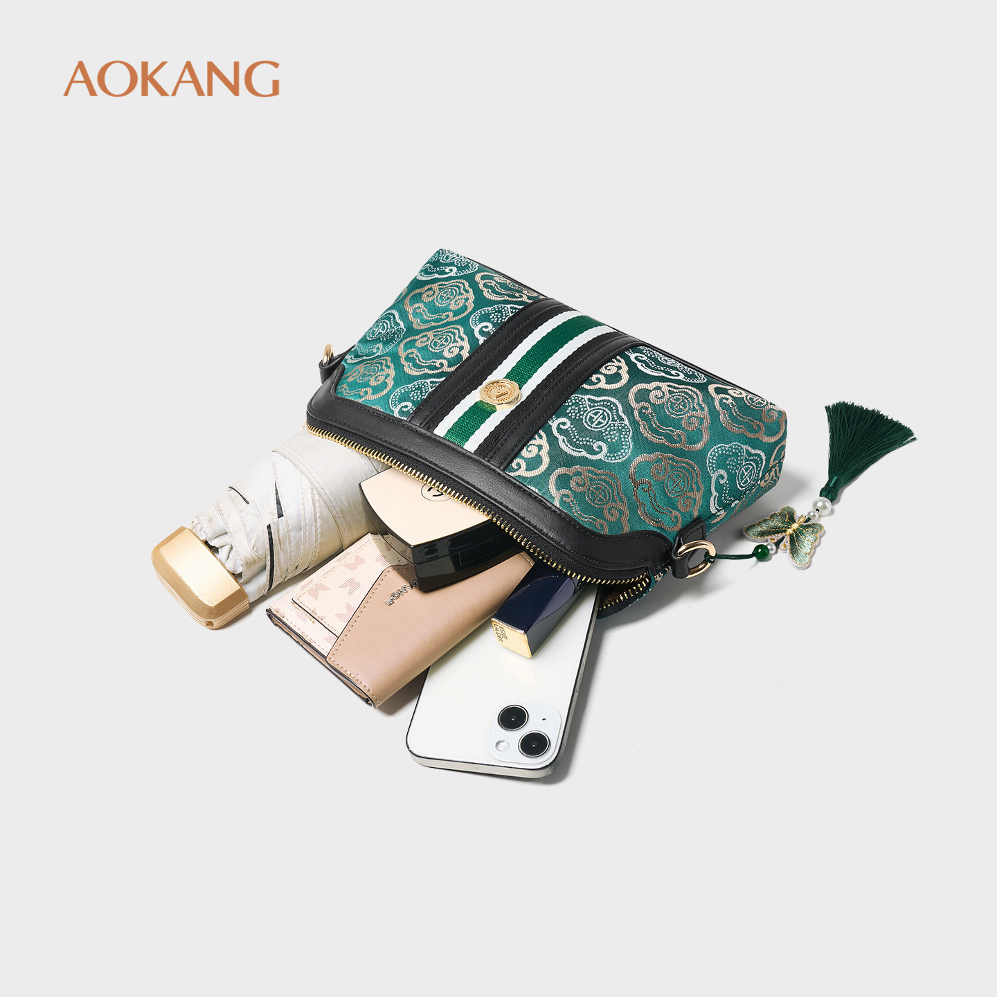 奥康 女包2026新款新中式小方包国风刺绣单肩包大容量通勤斜挎包G