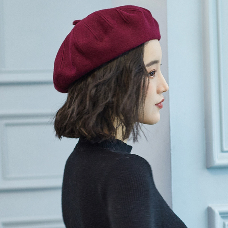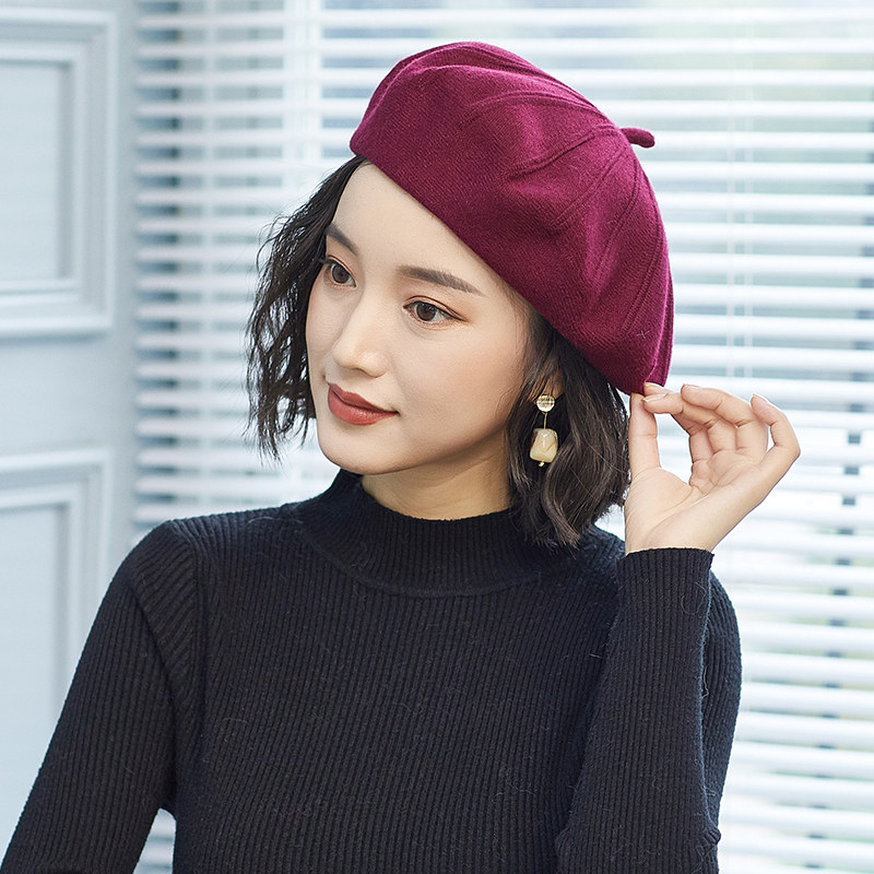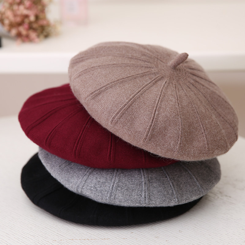 恒源祥含兔毛贝雷帽女英伦复古秋冬针织日系百搭毛线帽子文艺帽潮