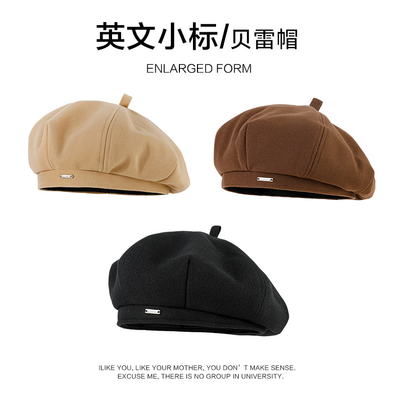 黑色贝雷帽女春夏2025新款显脸小蓓蕾帽八角帽时尚画家帽洋气帽子