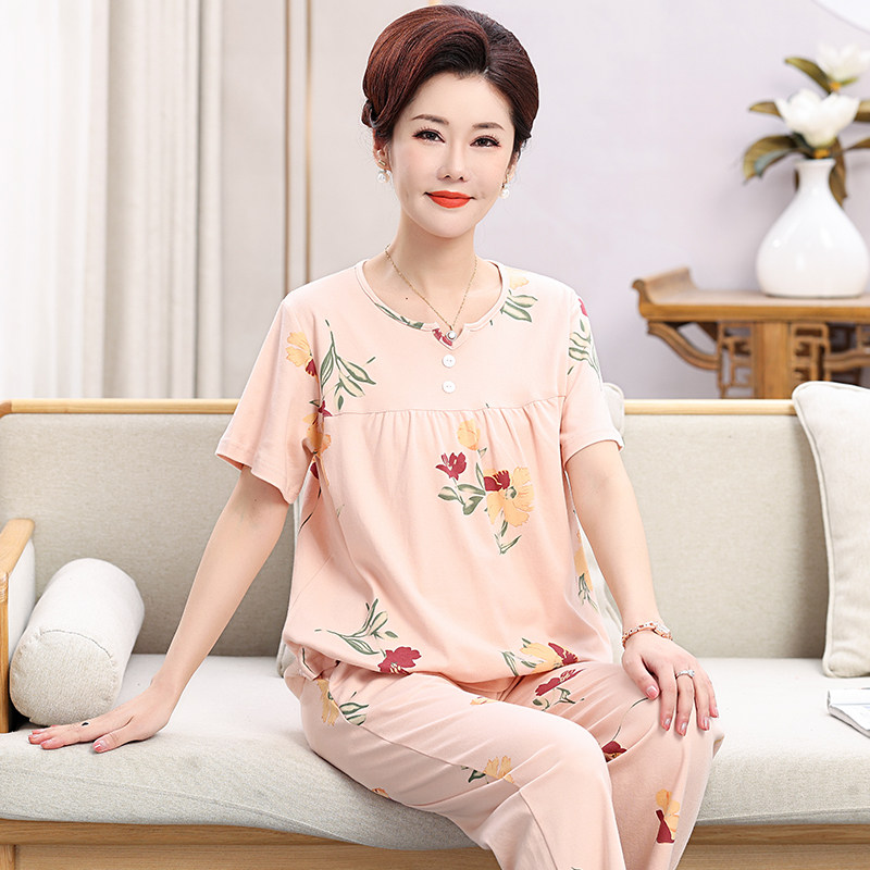 中老年妈妈睡衣女夏季2025新款短袖长裤薄款大码可外穿家居服套装