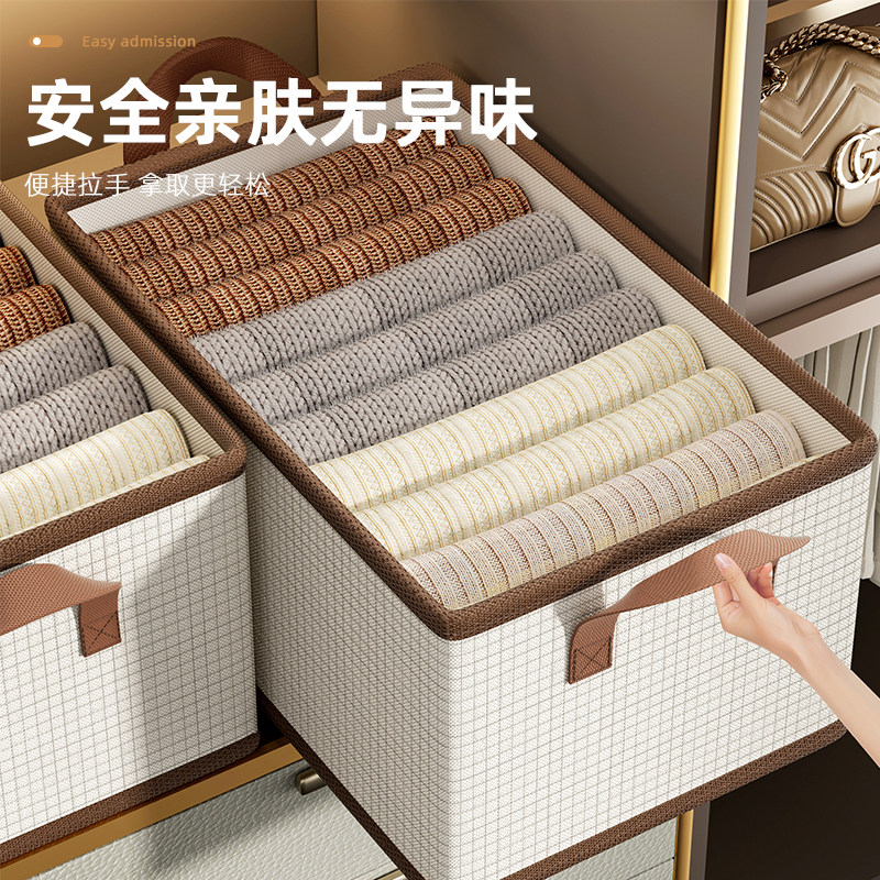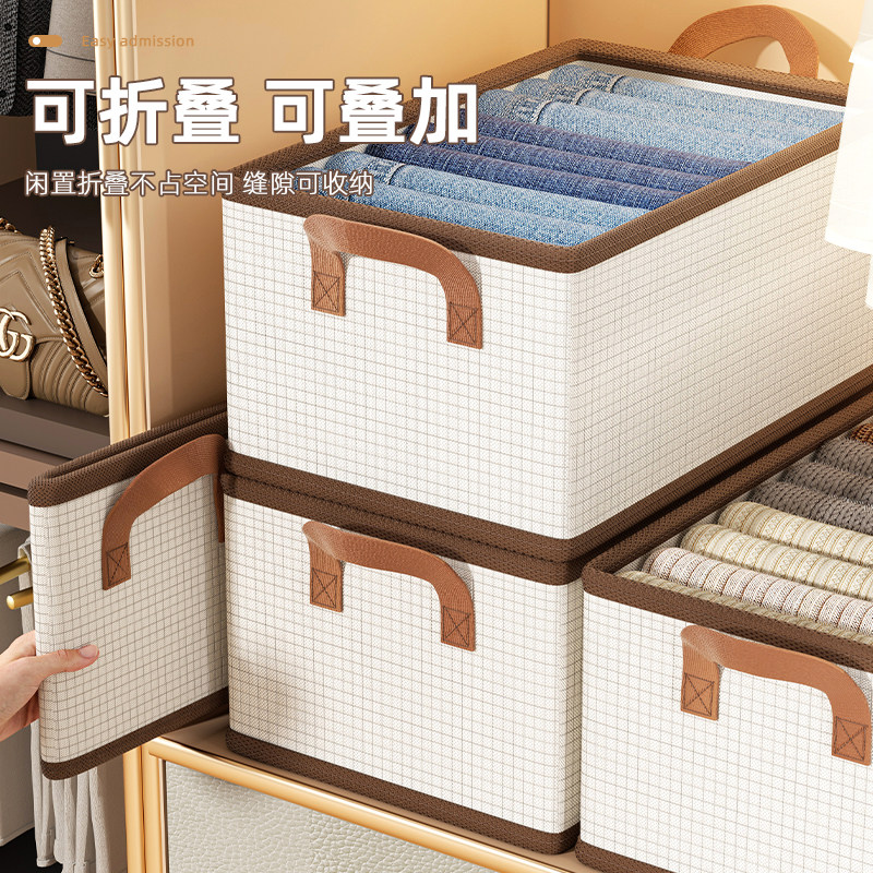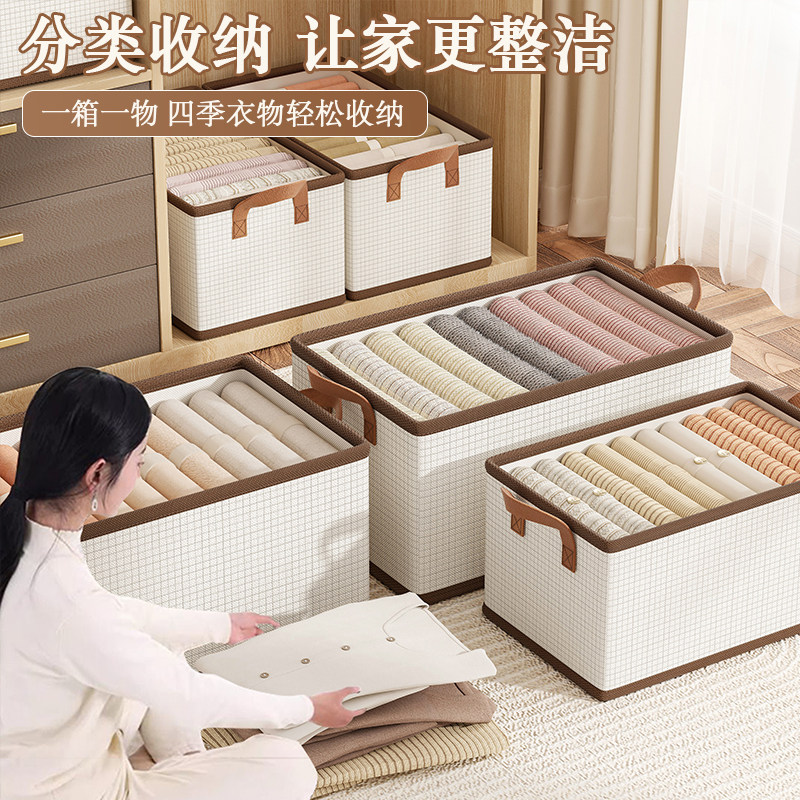 天山棉麻收纳筐衣柜收纳整理分层神器PP板可水洗衣服储物盒收纳箱