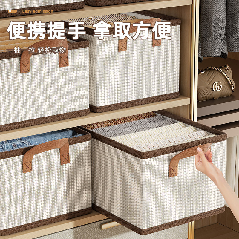 拍1发4衣服收纳筐神器布艺装衣物衣柜分层收纳箱家用框裤子整理盒