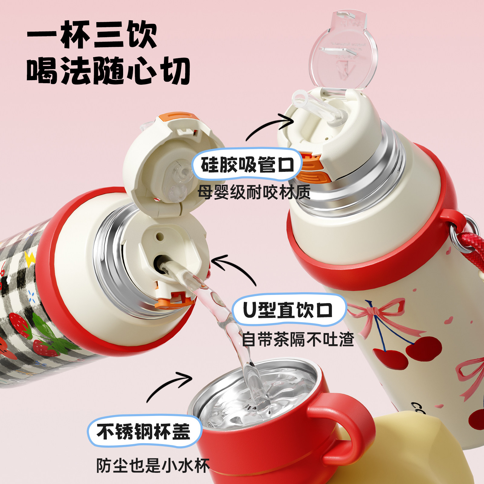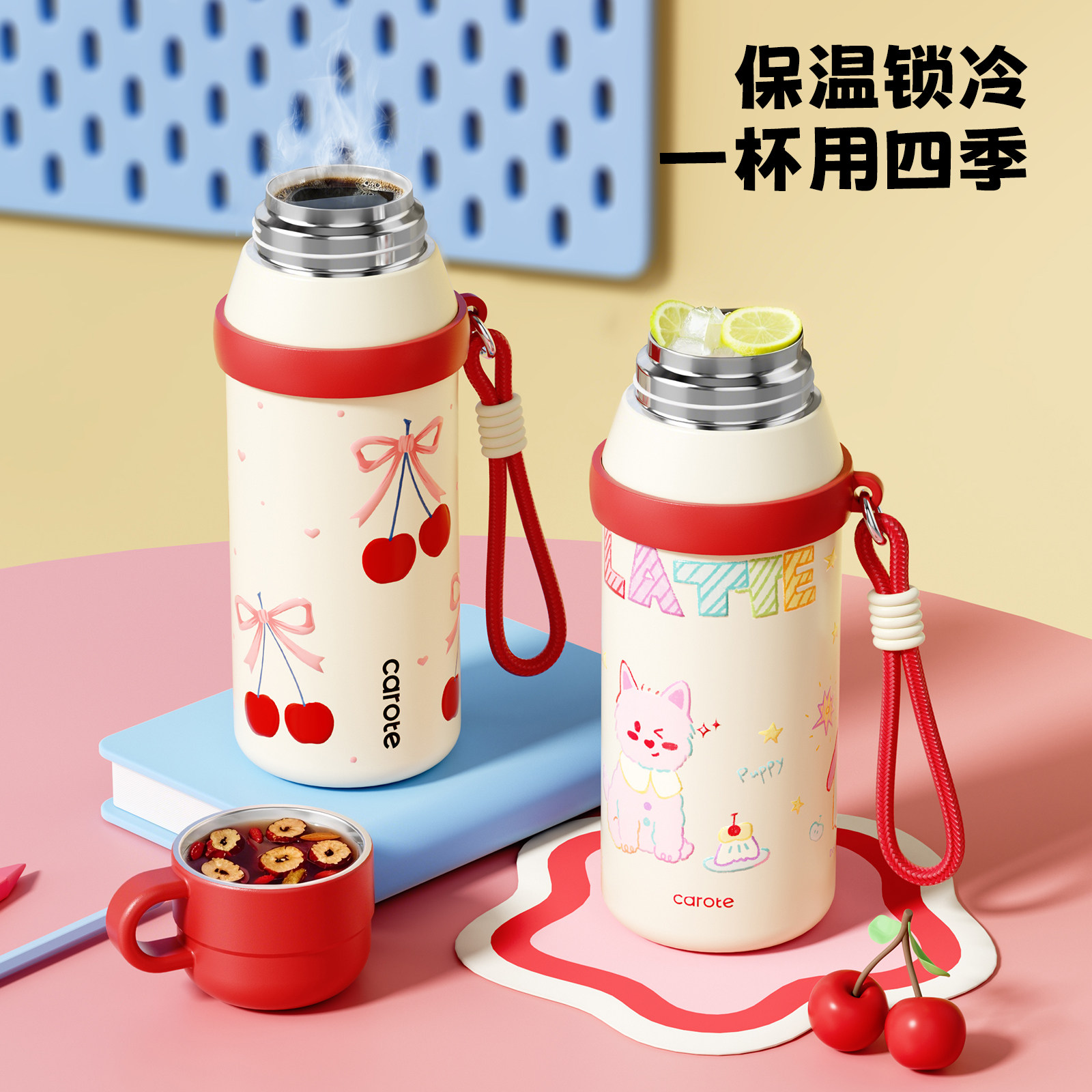 卡罗特保温杯带杯盖泡茶水杯女生高颜值2026新款儿童吸管杯子礼物