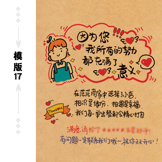 外卖贴心卡餐饮售后牛皮彩便利贴美团运营贴纸卡片手写感谢信定制