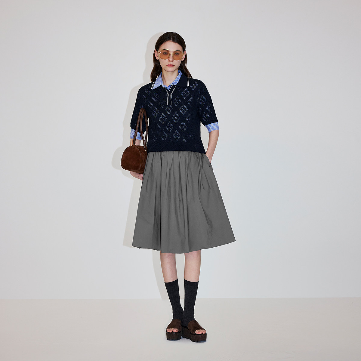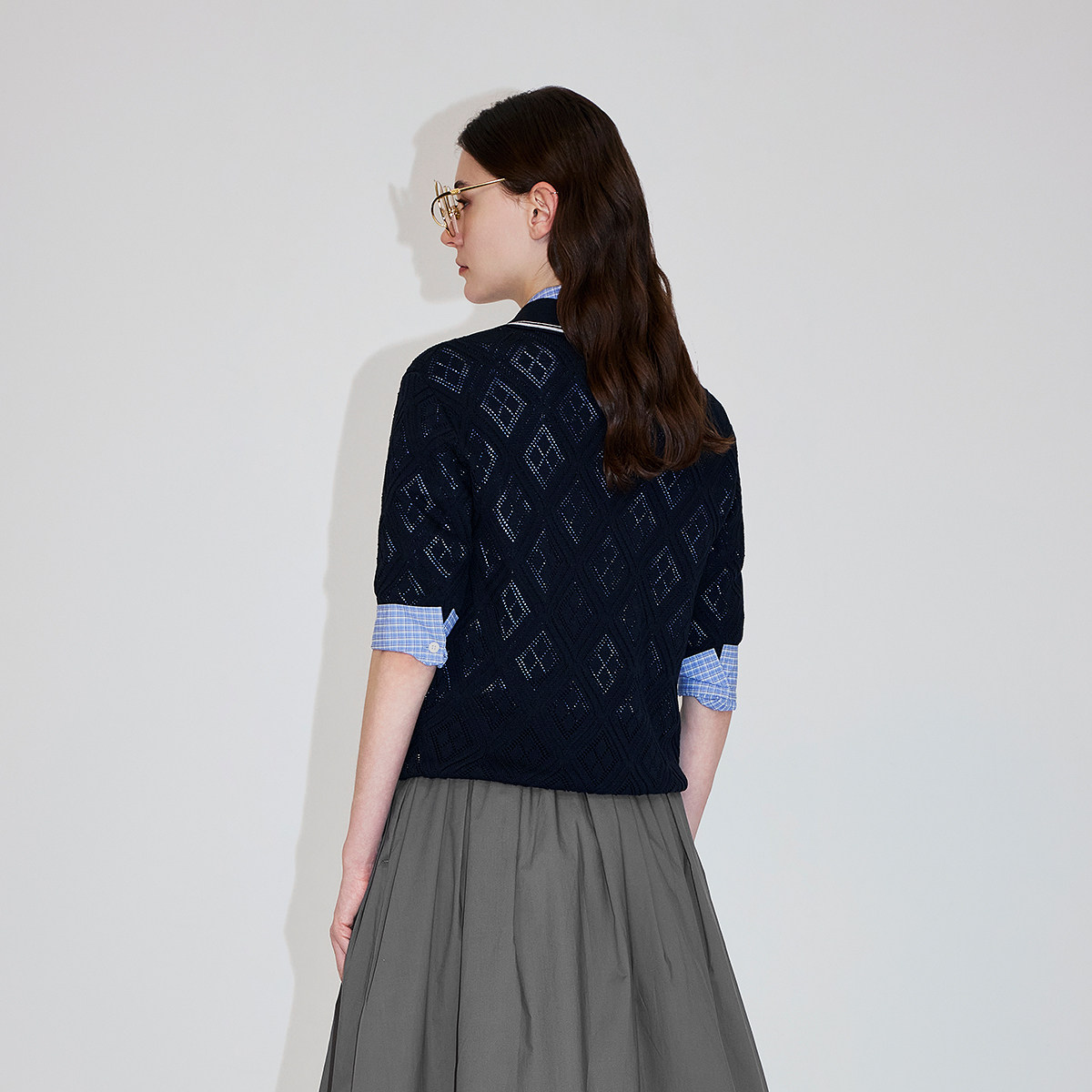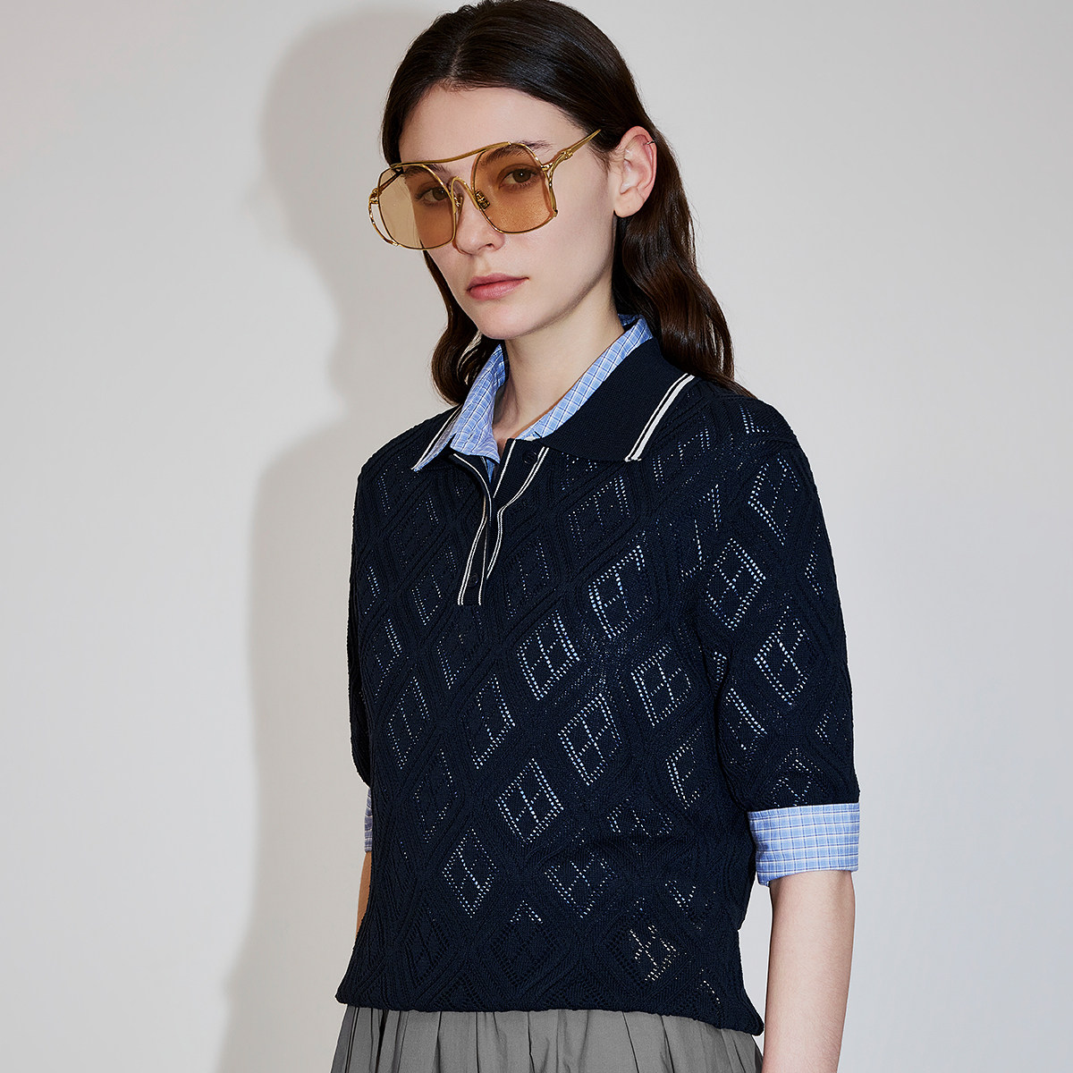 【新品】OCHIRLY欧时力 莱赛尔亚麻菱格镂空polo短袖针织衫26春夏