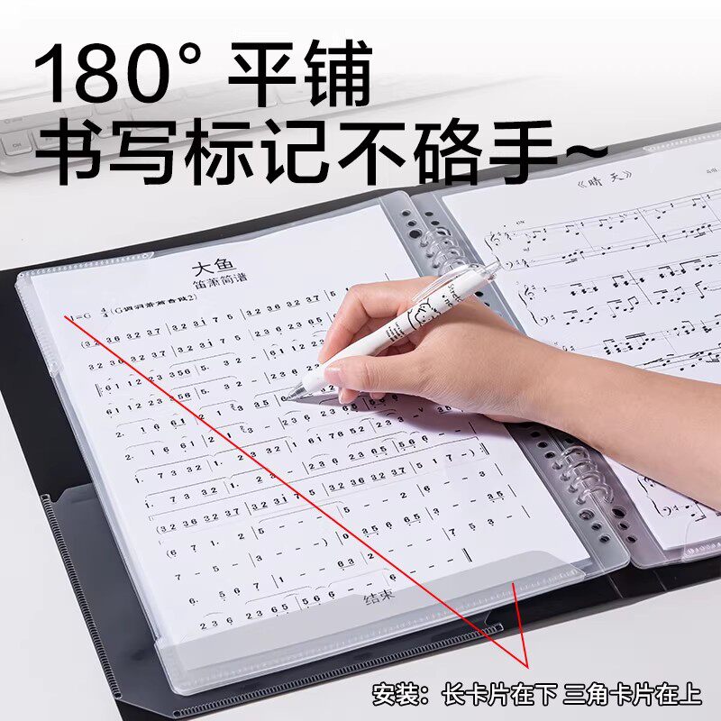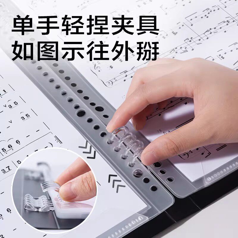得力乐谱夹活页文件夹A4钢琴谱收纳册吉他古筝音乐谱夹子不反光透明插页架子鼓合唱歌谱曲谱展黑色开式乐谱册